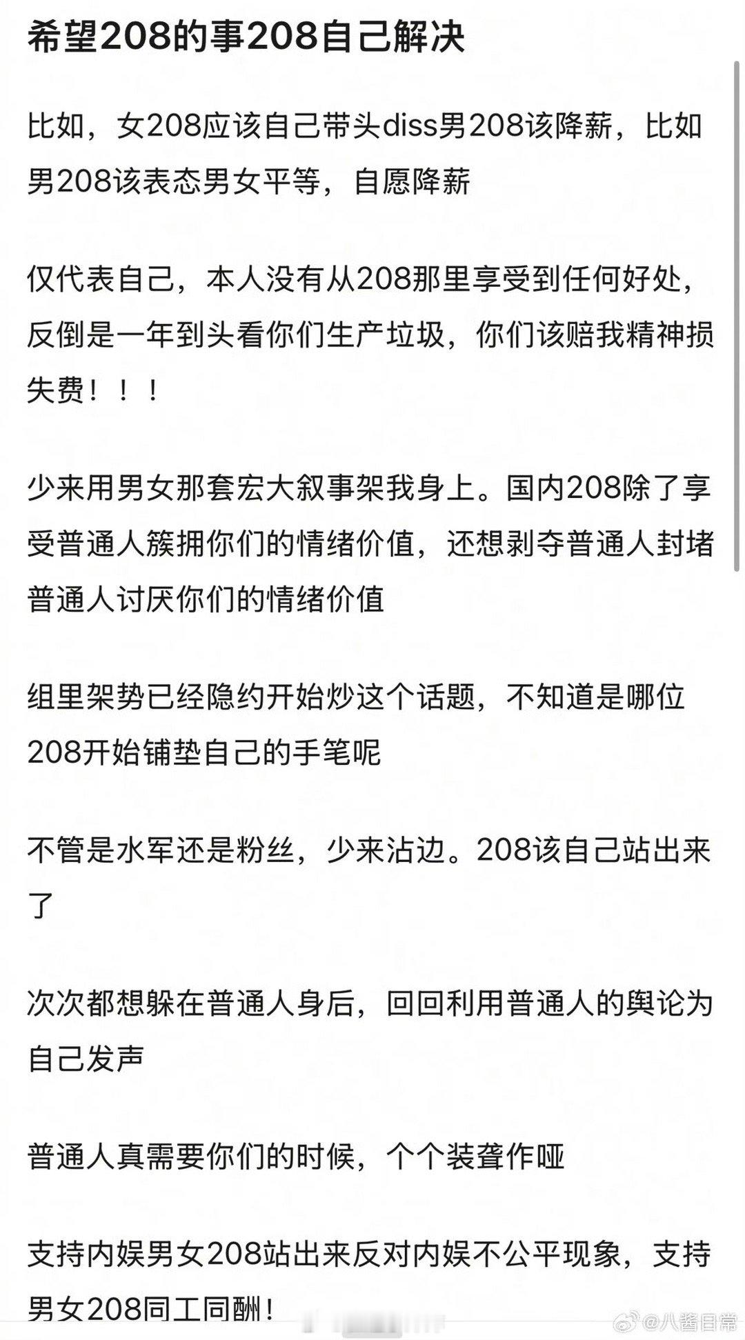 根源在于饭圈99%都是女的,所以男208就是牛,和普通人没关系。