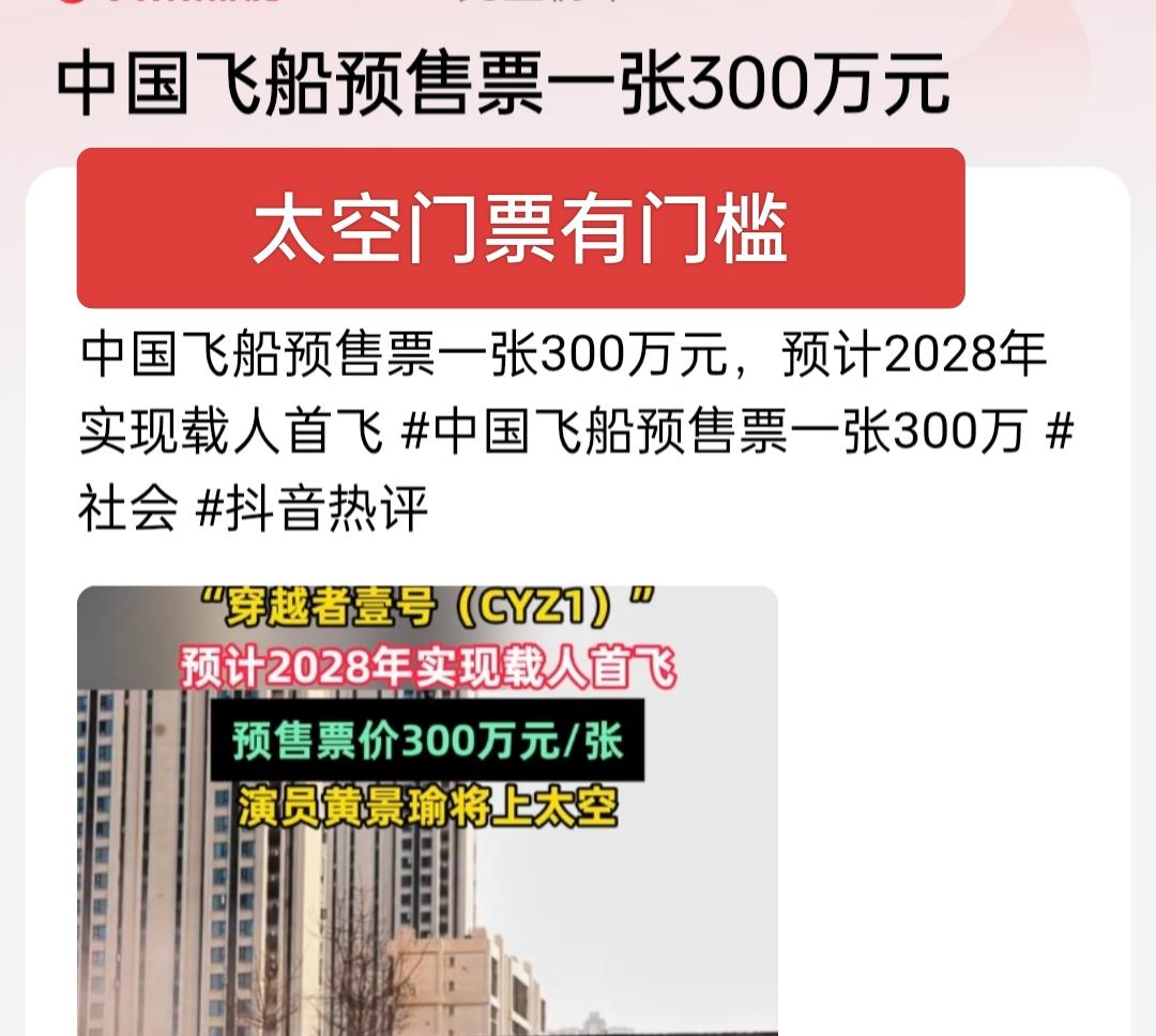 史上最贵的船票来了,300万一张,这船票门槛相当高,不是有钱就行,除了不差钱,更重要的是要有个好身体,几倍的重力加速度要能扛得住,要有飞行员的身体素质,身体素质不过关的只能望票兴叹了! 预计2028年首飞,首批船票已售完,期票销售竟然如此火爆,看来大家都很向往太空!