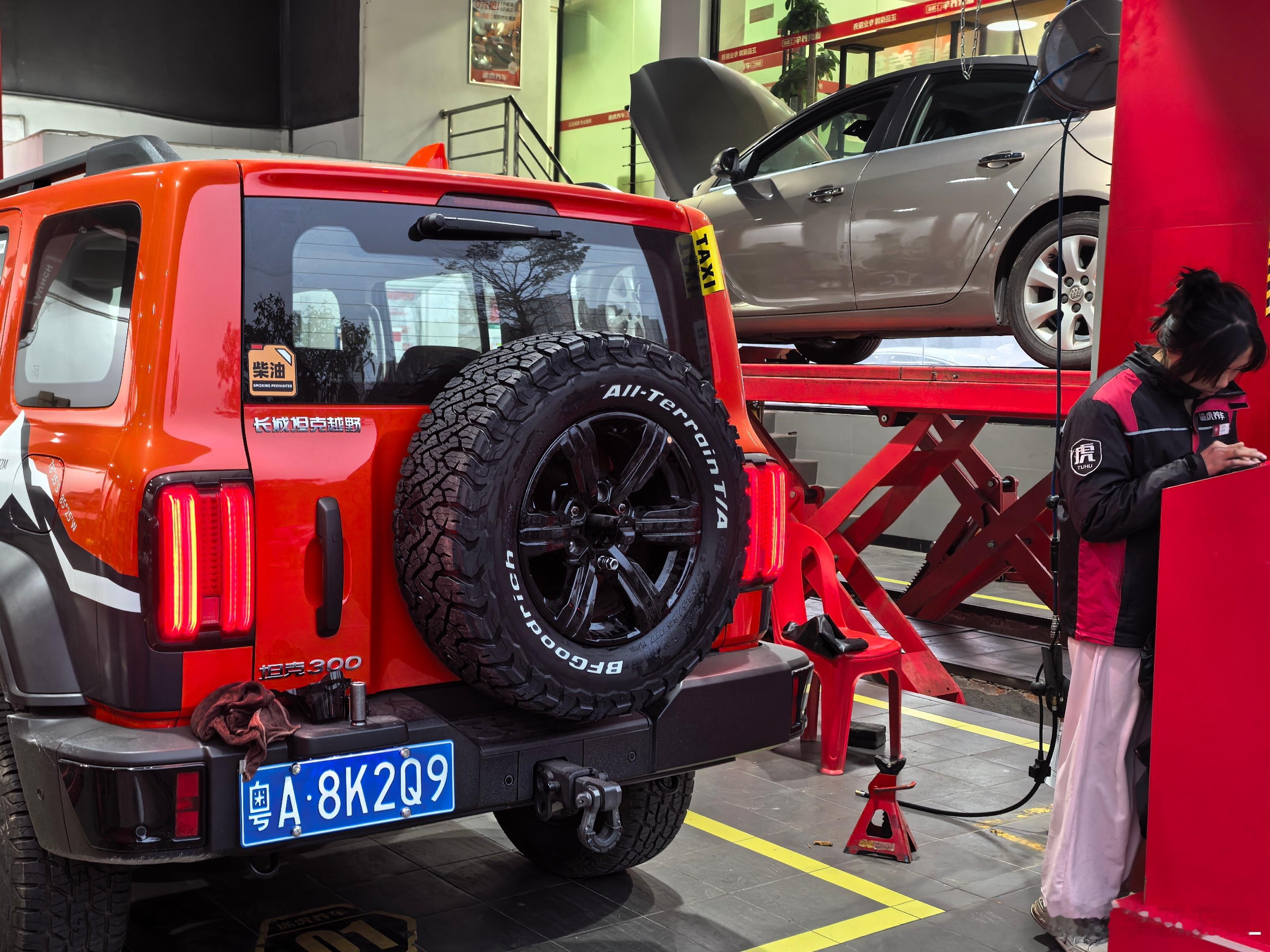 给大家讲个笑话。不是在给坦克300换AT胎吗?技师小王拖来千斤顶就要把车抬起来给