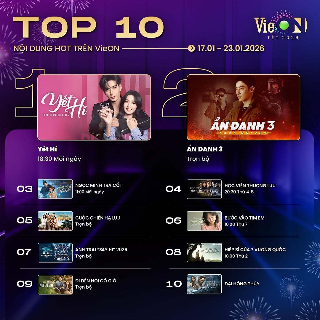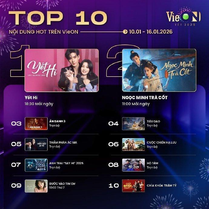越南VieON视频平台本周播放量前十排行榜(26.1.17-26.1.23)1、陈星旭卢昱晓《轧戏》,蝉联冠军,占据榜首位置两周3、侯明昊古力娜扎《玉茗茶骨》,上周第二,本周第三陈星旭卢昱晓剧里互吻剧外互关 玉茗茶骨