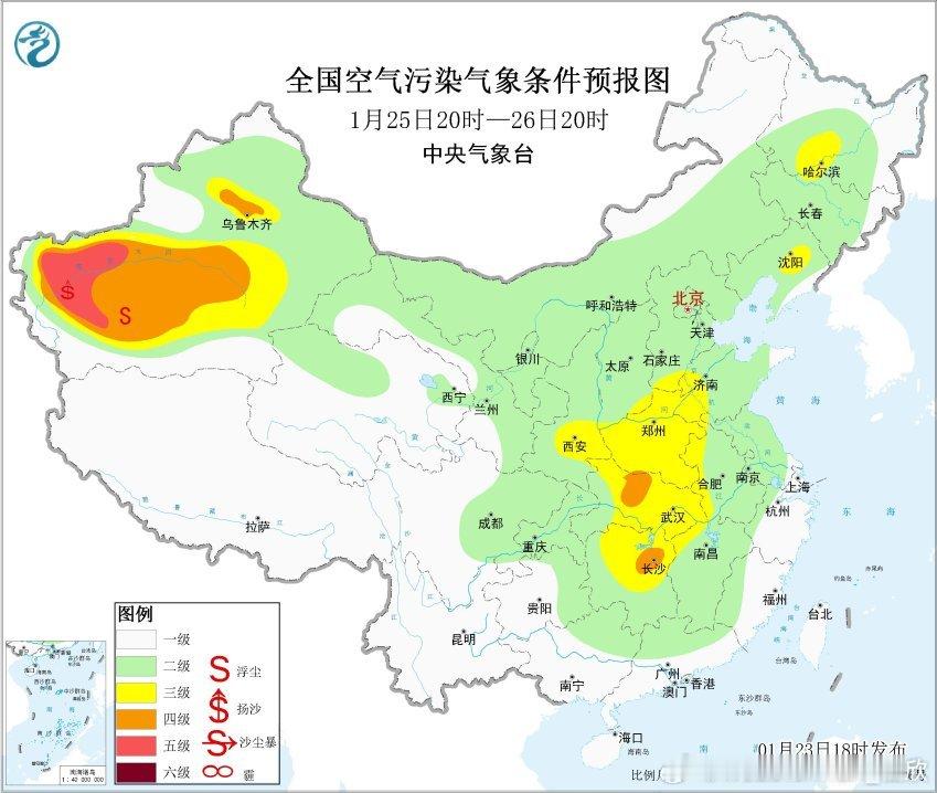 【雾 霾 沙尘 均发展】预计23日夜间至24日上午,河南东部、安徽北部、湖北中部、四川盆地西部等地有大雾天气,局地将有能见度不足200米的强浓雾。从图2-3看,湖北河南安徽江苏一带,地面附近湿度大,850百帕为干区,而且处于500百帕槽后脊前西北气流中,利于夜间辐射降温,形成大雾。从今天8时和17时空气质量对比看,陕西关中、河南、河北南部、山东西部,总体有所转差。污染堆积,霾发展增多。而在新疆塔里木盆地,沙尘的污染依然在持续。和田、克州还处于爆表中。未来冷空气东移南下,先使得西北等地沙尘增多,再推动华北南部、黄淮的霾向南转移、减弱。24日至25日,新疆南部、甘肃西部、内蒙古西部、宁夏北部等地的部分地区有扬沙或浮尘天气。23日夜间至24日,华北中南部、黄淮西部、陕西关中地区、四川盆地西部等地大气扩散条件较差,有轻至中度霾,局地重度霾。25日,受弱冷空气影响,华北中南部的霾天气减弱或消散,黄淮西部、江汉等地霾天气仍将维持。