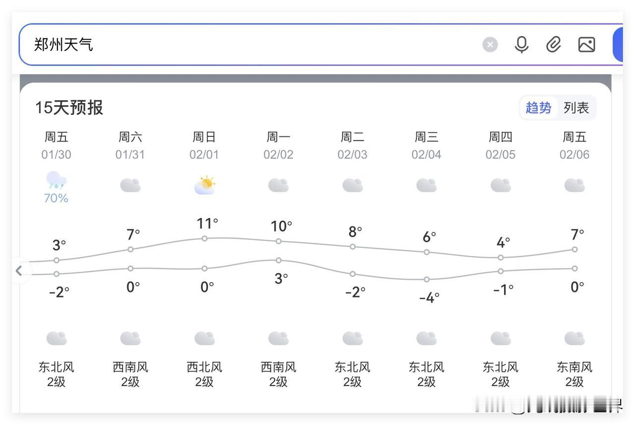 噢!1月24日到29日,河南省郑州市,空气质量不容乐观啊,而且,好像不会下大雪啊!总体来说,1月24日到2月6日的河南省天气预报,大趋势……看了看,让人感觉不爽快,没劲!没意思啊! 要是有大范围降雨降雪,空气质量恢复优良也是非常值得期待啊! 这次,郑州会下雪吗?! 不知道……真希望郑州,河南,这次下雪吧!