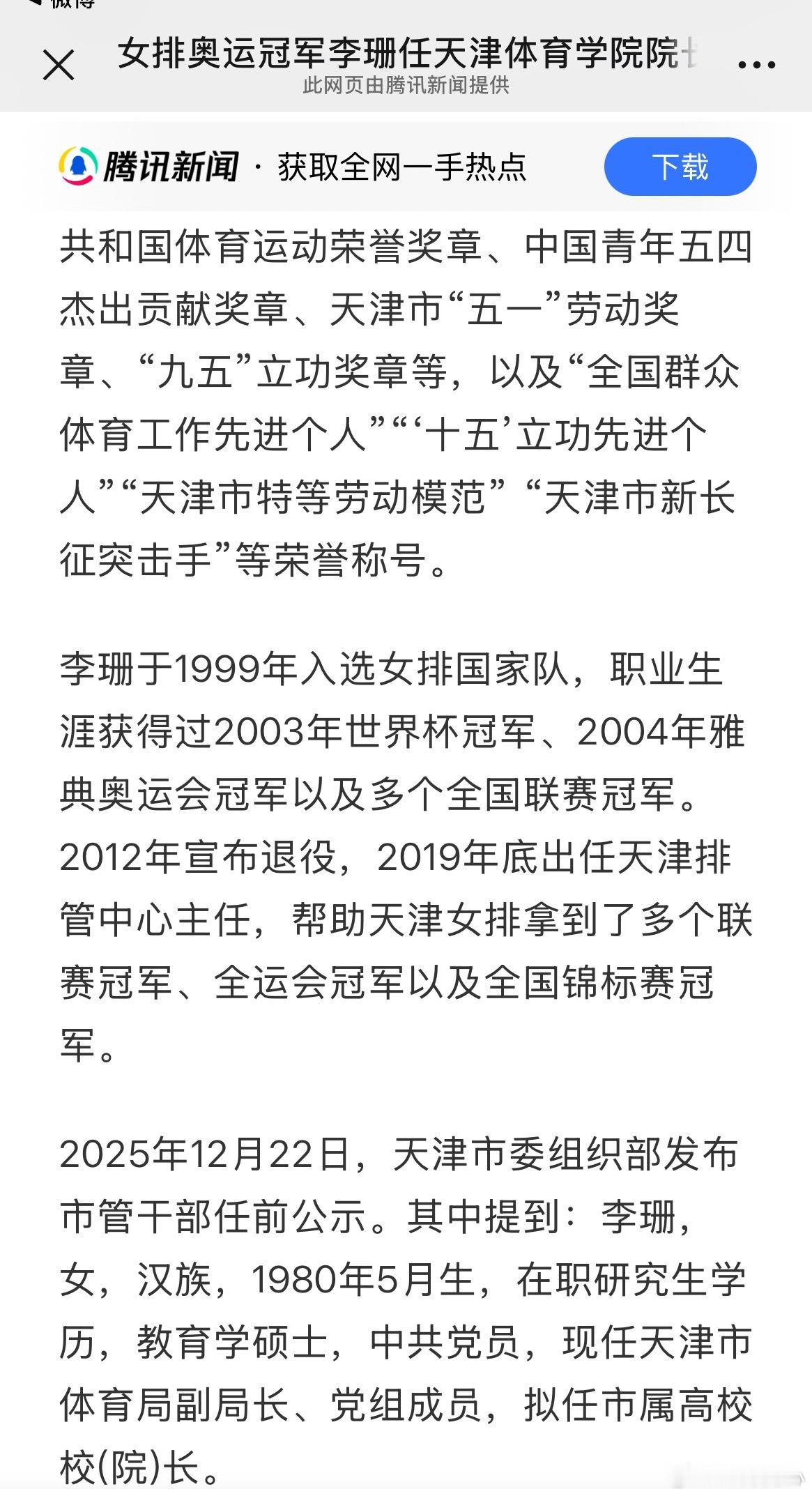 女排奥运冠军李珊任天津体育学院院长李珊出任天津体育学院院长(来自澎湃新闻消息)世