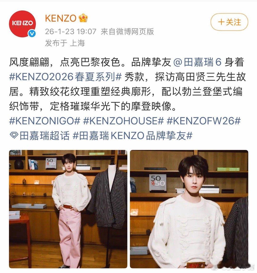 恭喜田嘉瑞成为KENZO品牌挚友!🎉
