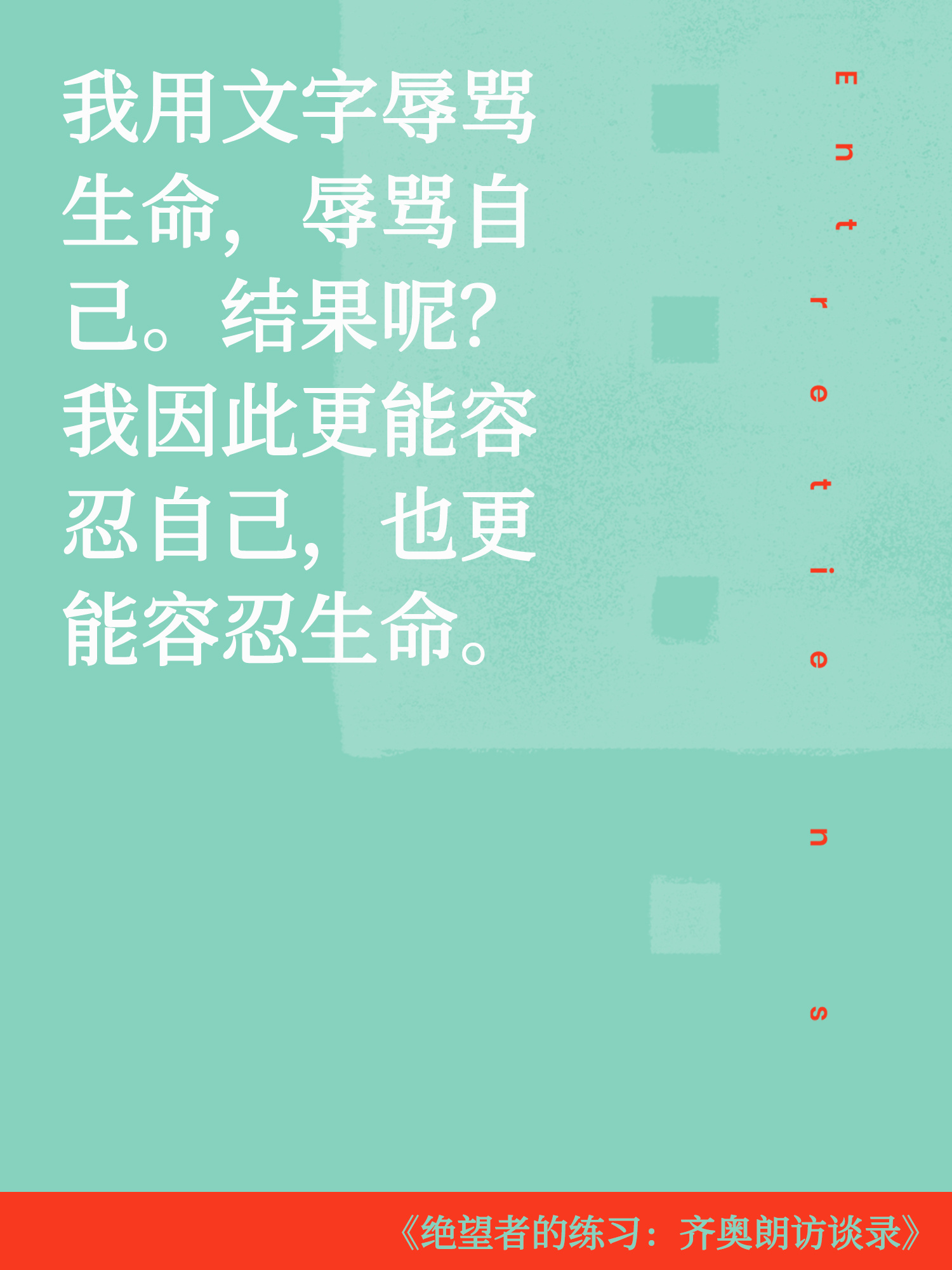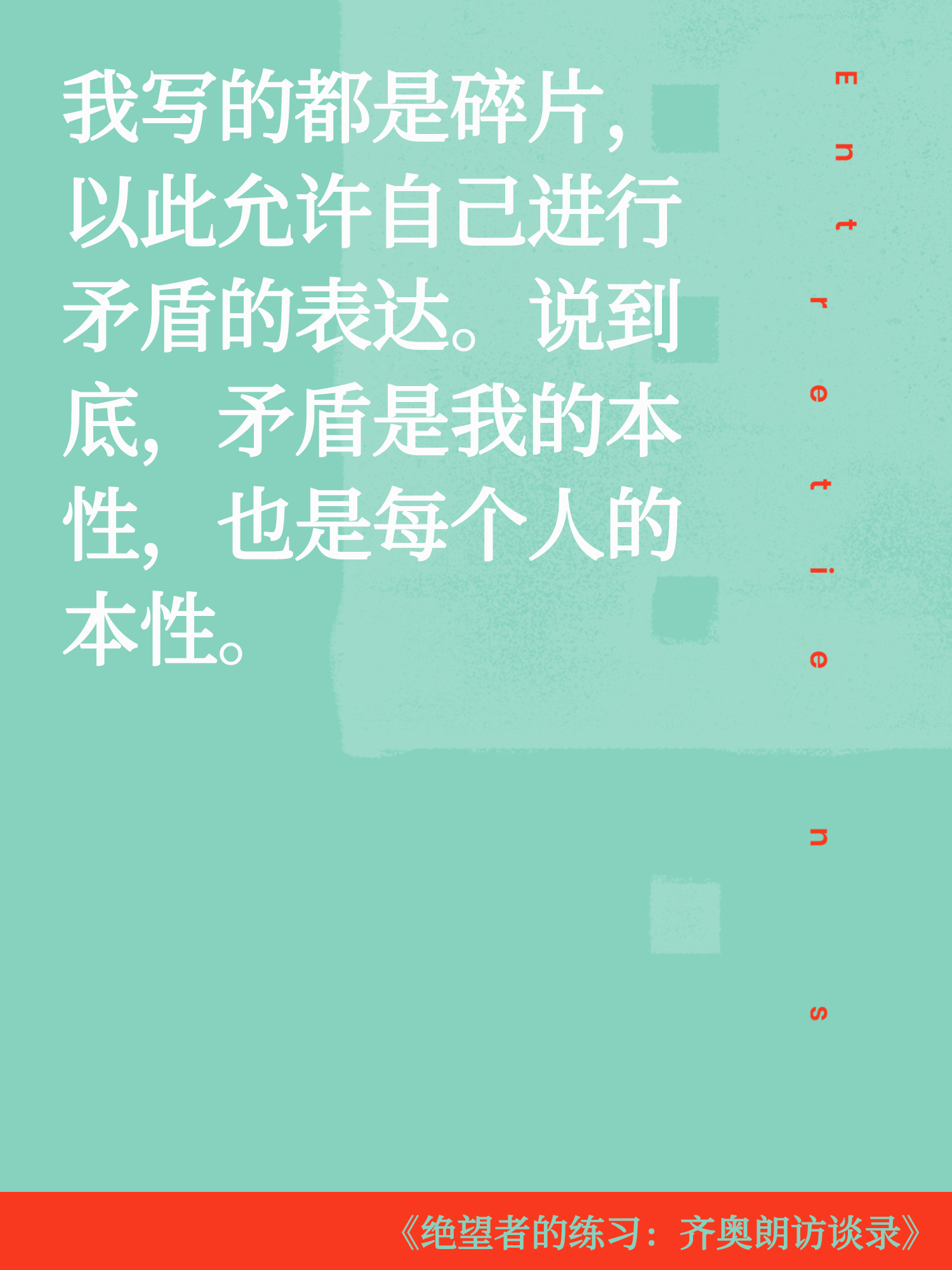 【转发赠书】《绝望者的练习:齐奥朗访谈录》“反哲学的哲学家”齐奥朗最全访谈合集,二十场思想探险,横跨生命最后的二十五年“我对存在充满热情,但与此同时,我所有的想法都对生命抱有敌意。”齐奥朗在这些来自世界各地的采访中,回忆在罗马尼亚的童年和青春岁月、移居法国的经历、思想的来源、与友人的关系,并谈及自己为何抛弃母语,改用法语写作。访谈真实呈现了贯穿齐奥朗作品的核心主题,汇聚了其碎片化思想的精髓:无聊、失败、死亡、神秘主义……机锋与笑语之间,折射出这位“异端”思想家的矛盾本性——激进的悲观主义中,总是伴随着欢快、幽默和嘲讽。【转发并关注我,下周五揪2位小可爱,各送一本!】(顺手评论和点赞可以提高中奖率~)
