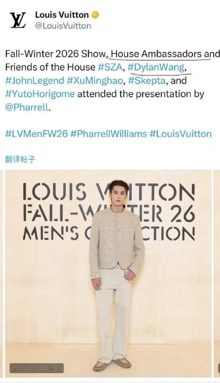 Lv外网多个平台ins、story、推特认领王鹤棣,lv内娱最年轻的代言人