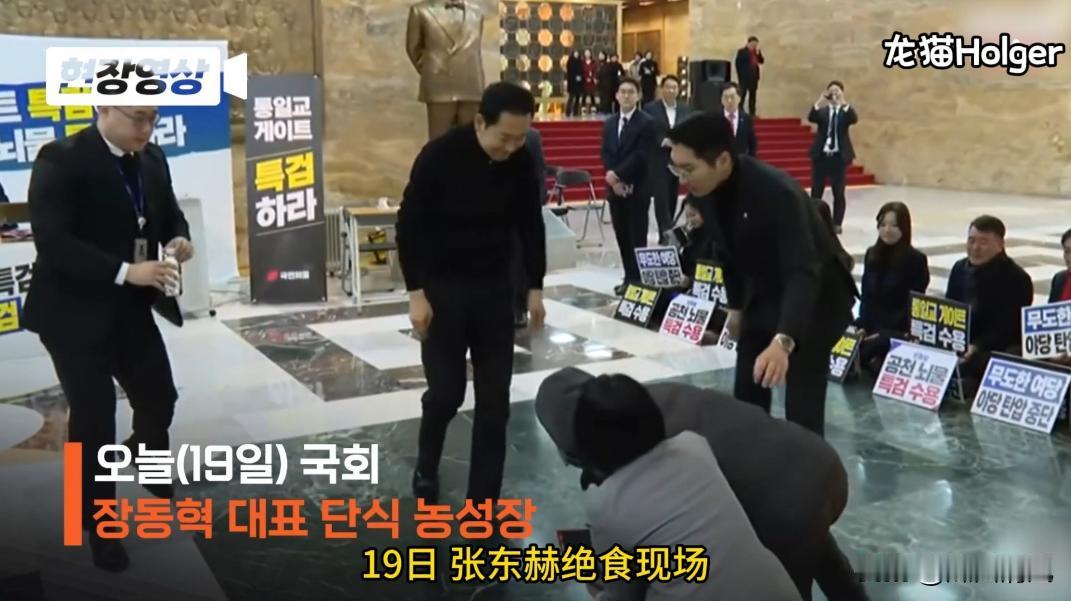 韩国政坛最近上演了一出“苦情戏”。 1月21日,最大在野党国民力量党党首张东赫绝食抗议进入第七天,身体已亮起红灯。血氧饱和度暴跌,全靠医用制氧机续命,却仍坐守国会地板,拒绝就医,一副“不达目的誓不罢休”的架势。 不过党内都快看不下去了,正计划强行送医,这场高调抗议大概率要收场了。 这事在中国网友眼里画风突变。不少人笑言:“七天不吃东西?那不就是辟谷嘛!”有位老哥现身说法:“我胃病时断食七天,头两天饿得心慌,后面反而神清气爽,走路像踩云,状态好到想晨跑。”还有人模仿李总统语气打趣:“当年我也这么饿过,结果落下病根,现在看见狗粮都想尝一口!” 玩笑归玩笑,背后却透着一股荒诞。嘴上喊着“为民请命”,实则把民众情绪当筹码,在国会门口比谁更能熬、更能演。本该是互相制衡、理性监督的两党政治,如今却沦为街头斗法、道德绑架的角力场。绝食、哭诉、静坐手段越来越悲壮,政策主张却越来越模糊。 真要为老百姓谋福利,靠的不是谁饿得更狠、氧气吸得更多,而是拿出实实在在的方案。 再感人的表演,也不过是一场精心编排的政治秀。 人民不是道具,国会也不是剧场。 别拿“牺牲”当流量,更别把肚子空当成正义。