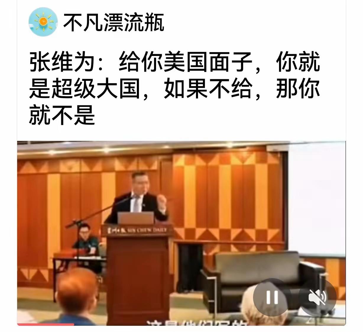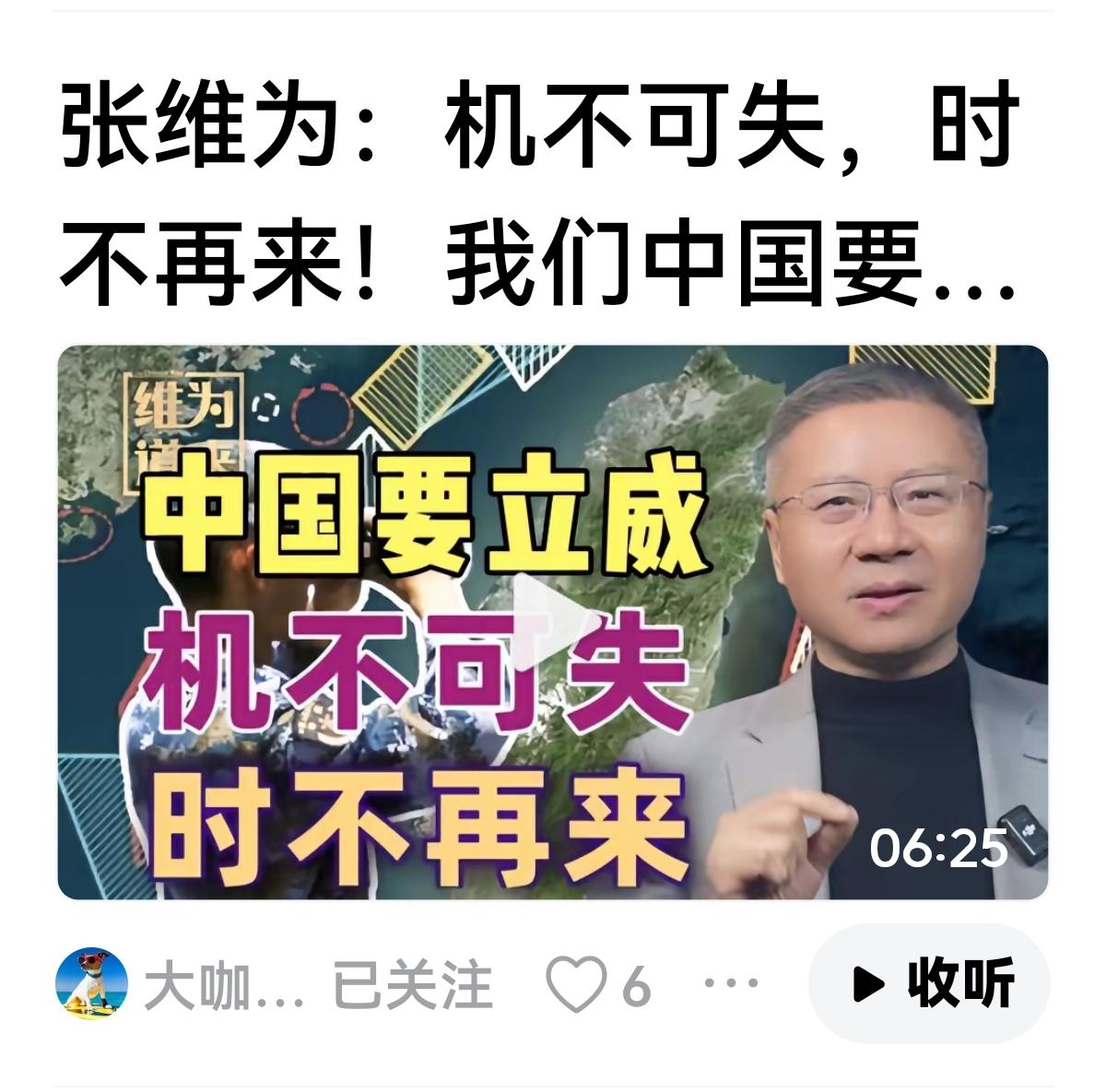 【张维为铮铮誓言】 张维为;机不可失,失不再来,我们要立威了,给美国立规矩,给美国面子,美国就是超级大国,如果不给,你啥也不是。 面对记者提问:何时收复? 张维为幽默恢复:可能没有下一次大选。 面对加勒比海扣押第三艘的时候,张维为是不是口头越来越嗨,无所顾忌?我们还在这里被他热血沸腾,人家早就进入下一个议题?
