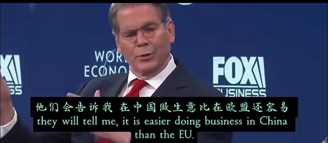 美国财长贝森特在达沃斯论坛上表示:“科技高管说,在中国做生意比在欧盟还容易。的确,如果从公司设立、银行开户等营商系统看,中国比欧洲灵活多了。如果你的母公司在欧美,在中国不准备贷款,的确可以进军中国。中国比较麻烦的是两点,一是货币不能自由兑换和进出,二是司法环境比较不稳定。” [机智]评几句:贝森特在达沃斯的讲话看似公允评点中欧营商环境,实则是裹着客观外衣的美式话术算计,明夸中国营商效率吊打欧盟繁文缛节,暗戳戳拿货币兑换、司法环境做文章挑刺,兜兜转转终露美式私心——把中欧各打一板后,暗指美国才是最优投资地。这番言论尽显贝森特的话术精明,一边借中国之优贬欧盟之弊,消解欧洲的投资吸引力,一边给中国贴莫须有的标签制造投资顾虑,本质是为美国本土抢资本、争资源的阳谋。而欧盟的制度僵化已成硬伤,中国的发展优势本就实打实,贝森特的刻意挑刺与导向,不过是美国为资本回流量身定制的舆论套路罢了。同时我们也确实需要正视外界顾虑,针对货币兑换、司法环境相关质疑有则改之无则加勉,持续优化营商环境,用实际行动打消投资者担忧,把发展的根基扎得更牢。