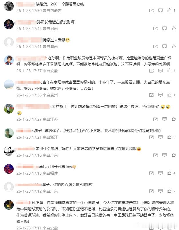足坛名宿孙继海今天转发了网友批评“足球小将”转播未成年人比赛的微博,并点名小将的赞助商,质问“赞助的是青训还是马戏团”,但随后很快删除了这条内容。球迷分析可能是忘记切小号了……然后足球小将的支持者们不愿意了,目前孙继海的微博评论区已经沦陷最近这事闹得太乱了,急需一个有威望的足坛大哥出来调停一下……