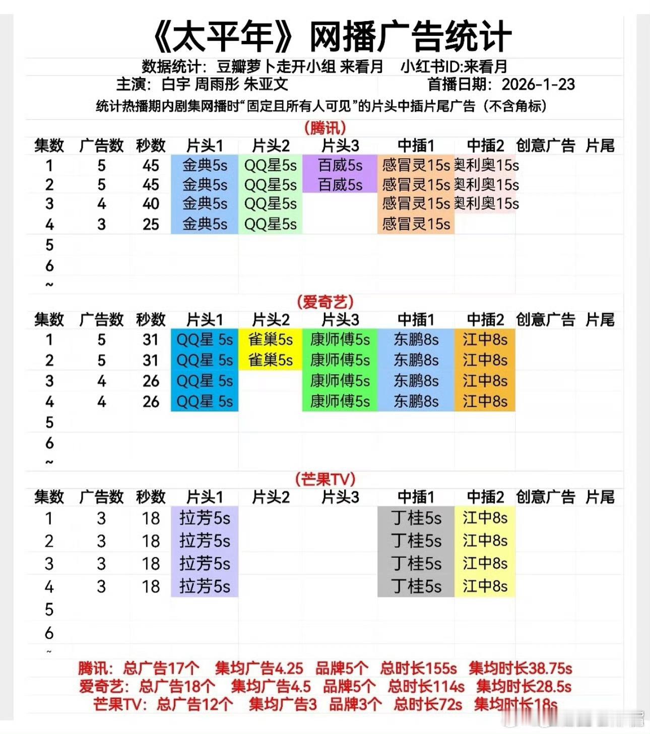 太平年开播预告白宇 周雨彤《太平年》收视网播广告数据:🐧开局5-4-3广🥝开局5-4广🥭开局3广太平年招商