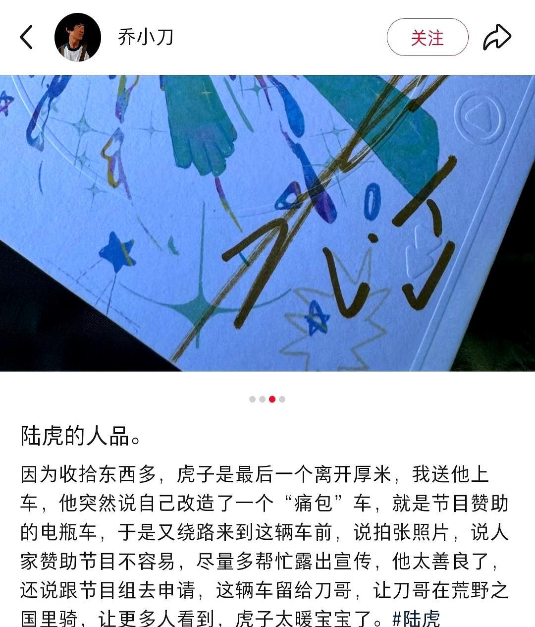 收工后他多留了20分钟 别人拎包散场,陆虎蹲停车场给赞助电动车拍特写,一拍就是20分钟。拍完了,他问制片:车能不能借刀哥跑通告?一句话,赞助商当场点头。 这五年,他手机存着所有合作需求,每条商务微博算转化。节目收视破1那天,没人再提他“接不到活”的旧账。小牛电动官微转了他的图,芒果TV顺势官宣番外篇。 聪明人算流量,实在人攒人品。多留的20分钟,比热搜更值钱。