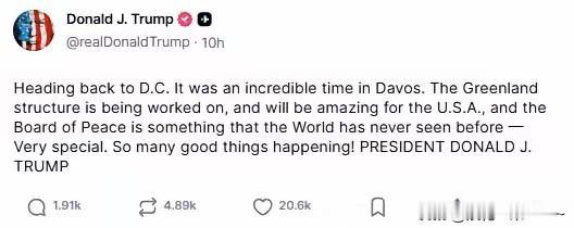 一大早,突然想,扪心自问一下,也怪不得人家特朗普富裕,他都79岁了,参加完达沃斯会议后,还能狂发80条帖子…你说的人家工作多努力啊。这几乎是24小时连轴转在工作,在努力工作为美国,为家族赚钱啊。这怎么能说他是生气呢? 我看,如果一个人有这种工作状态和工作精神你不发财都很难。比如说,有的人喜欢发微头条,你一天才发多少篇?有这位79岁的老人发的多吗?[捂脸]