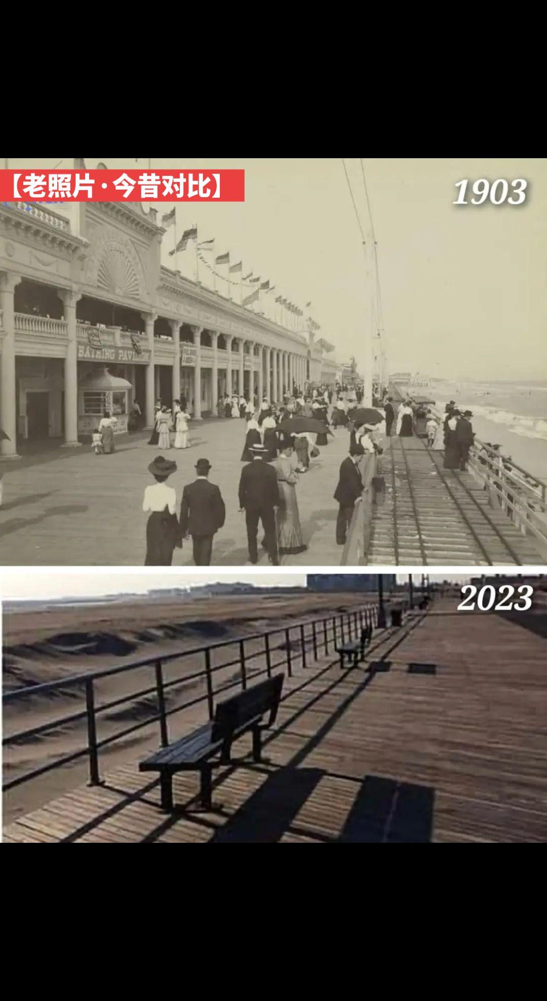 【老照片·今昔对比】皇后区洛克威海滩与木板步道,纽约市