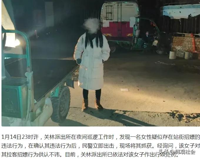 近日,派出所在夜间巡逻工作时,发现一名女性疑似存在站街招嫖的违法行为,在确认其违法行为后,民警立即出击,现场将其抓获。目前,派出所已依法对该女子作出行政处罚。 于是,有网友在评论区留言称,人家站在哪里?你们怎么看出来的?除非她叫了嫖客正在床上,当场抓住,有人证物证。否则,仅凭口供是不行的,正所谓:捉贼捉赃,捉奸捉双,仅凭当事人的口供多其处罚,这是明显的证据缺失。 其实,我们的办案单位绝对不会冤枉一个好人,想一想,大半夜一个打扮的妖娆的单身女人站在街上干什么?再说,像这种女人都是有案底的,叫到派出所一问,她们根本不能自圆其说。 所以,只要干了不好的事,谁也别吹大话,进去以后根本不用做思想工作,都会实事求是的说的。既然她自己都承认了,处罚她当然没有错。