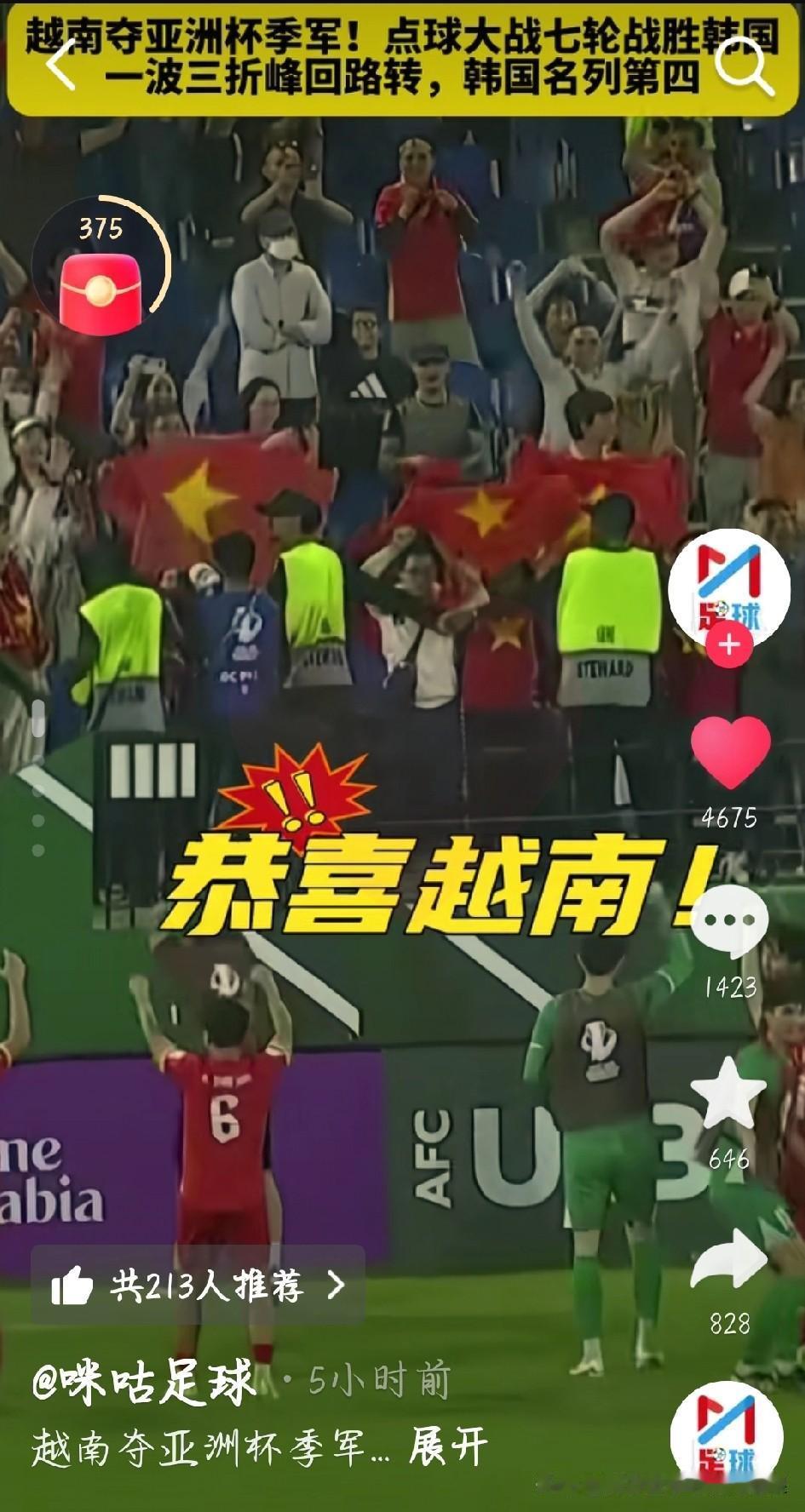 大冷门!十人越南9-8干翻韩国创历史 U23亚洲杯季军赛太燃了!越南队硬生生把韩国队拉下马,总比分9-8拿下胜利,直接打破韩国23年对越南的不败纪录!常规时间越南先领先,阮庭北又踢进神仙任意球,可惜红牌离场只剩十人,还被韩国读秒绝平拖进加时。加时赛越南全员死防,门将高文平神扑不断,硬是守到点球大战。点球环节越南七罚全中,韩国第七球被高文平扑出,直接定胜负!韩国空有控球和人数优势,愣是没拿下,越南这群小伙子拼劲太足了,这就是足球的魅力,永远不要低估一颗拼搏的心! 越南足球队 越南队 U23亚洲杯 越南9比8韩国 亚洲杯u23越南9:8韩国 越南u23男足