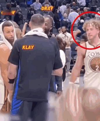 这一幕有点意思:勇士夺冠三兄弟聚首,聊至大笑,然,旁边波杰姆斯基加入进来,他们的笑戛然而止,随后,波姐一转身,他们又笑得合不拢嘴。 这被摄像机抓到,画面感极强,尤其是格林,他的笑可以瞬间凝固吗? “水花兄弟”的感情那不用说了,他们一同并肩作战并获得冠军,多年所建立起来的感情是杜兰特或其他人都无法比拟的,不要说波姐了。甚至可以看得出来,他们有点不喜欢这家伙,看看保安的表情吧。