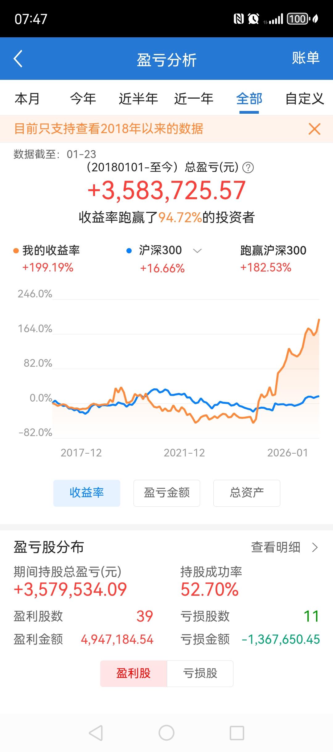 将近200%的收益并不高,且前期充满波折。 2020年5,6月份买入东方电缆,8月11号卖掉,赚了一些钱。但紧接下来,因为在银信科技,格林美等股票的错误操作下,回吐了全部利润。 后来2021年3月12号,6块8毛钱左右的成本,重仓买入沃尔核材。因为接下来的两年当中,市场一直处于震荡调整过程当中,沃尔核材最低时候一度跌破5块钱,所以你所看到的收益曲线,一度进入负数,账户资产最多时候回撤将近30%。 后来,沃尔核材大涨!2024年10月23号卖掉沃尔核材之后,买卖了几次科技股,都非常成功。单只股票少则收益%三五十,多则翻倍。正如目前你所看到的账户情况,其中有一只股票持股一年多已经翻倍。 我特别想强调的是,2021年9月份之后,我的股票买卖就没有再亏损过了,因为亏损时我也不会卖出。 2024年10月份之后,我的理念是,好价格买入好股票,不赚钱不卖,甚至不赚大钱不卖。 所以,再没出现亏损是很正常的。