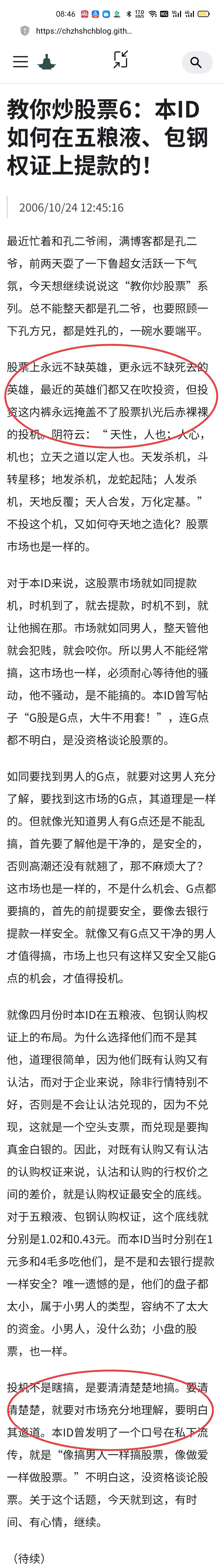 缠中说禅"教你炒股票108课"原文第六课 文中已画重点。资本市场是创造神话、塑造英雄之地。凭运气可能是一时英雄,凭实力才能成为一世英雄。要在市场生存,实力是硬道理,提升实力就要不断学习,提高认知,让能力与财富匹配。股票的涨涨跌跌都是投资者对未来成长性预期而产生的结果。二月份之后,年报行情又将上演,是该持有业绩成长确定性强的,还是跟随热点炒作未来业绩尚不可确定题材?也许业绩曝光的前夜答案就会揭晓,最终都是尘归尘,土归土。生存还是毁灭,这是个问题。