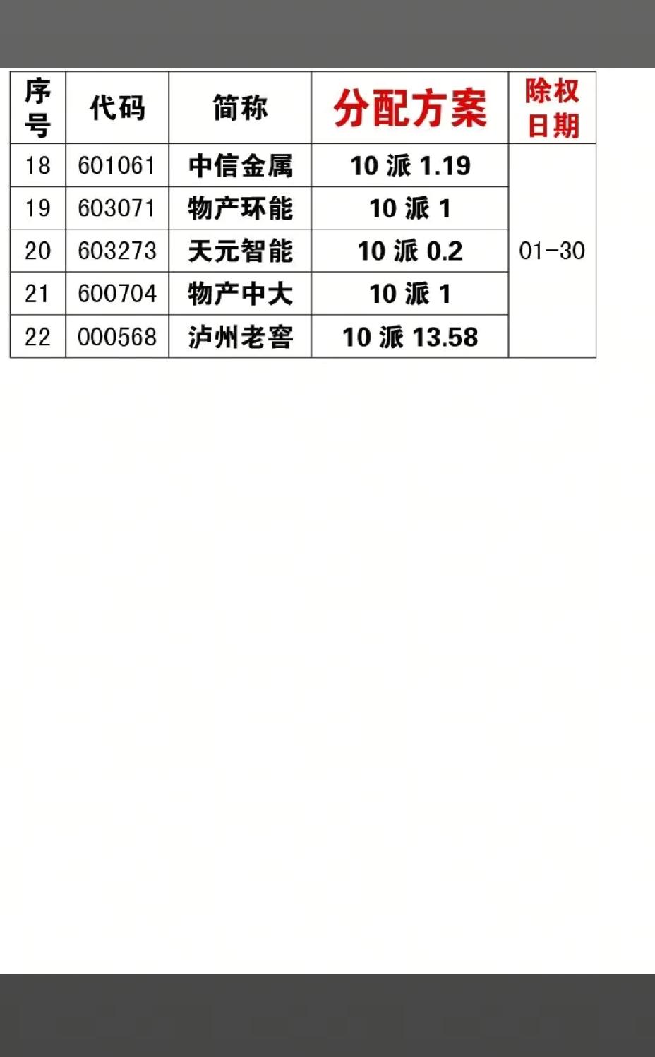 1月24日,A股下周将分红的公司一览表!!! 劲拓股份10派4.1,除权日期1月26日;川仪股份10派3,除权日期1月26日;日辰股份10派3,除权日期1月29日;巨化股份10派1.8,除权日期1月29日!!!