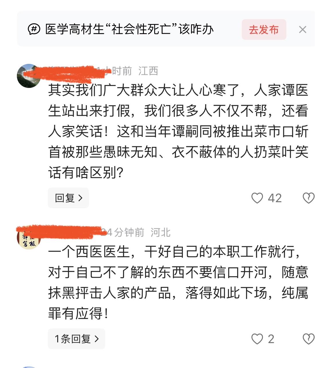 谭秦东事件中的两种不同看法,一种叹息,一种不屑一顾。