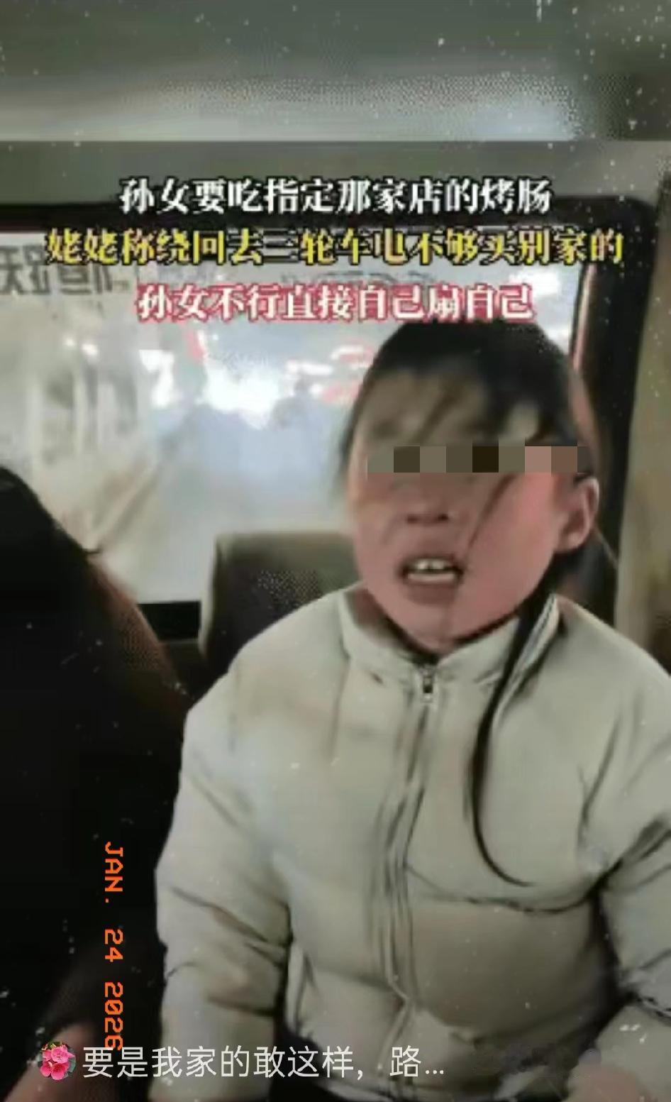 河南,一奶奶骑三轮车接孙女放学,走到路上孙女突然要吃烤肠,还非要指定的那家,可那家店已经路过了。 奶奶耐心解释,三轮车电量有限,绕回去买的话,电可能就不够用了,到时候推车回家得走两个小时。可孙女根本听不进劝,见奶奶不肯调头,坐在车斗里一边哭,一边抬手抽自己的嘴巴,小脸很快就红了。 路边摆摊的阿姨实在看不过去,递过来一根自家的烤肠,说不收钱让孩子先吃,结果被孙女一把挥开,哭着喊就要认准的那家。 奶奶急得眼圈发红,掏出手机想给儿子打电话问问怎么办,手指却抖得连号码都按不准。她心里清楚,这辆三轮车是儿子打工攒了半年的钱才买的,自己一把年纪,真要推车走两小时,身体肯定吃不消。 路过的大叔忍不住劝孩子,让她体谅一下奶奶的难处,可小姑娘只顾着蹬腿哭闹,完全不理会,引得周围路人纷纷侧目。 最后,奶奶咬咬牙,还是调转了车头,嘴里反复念叨着“听你的听你的”,语气里满是无奈。三轮车慢悠悠往回开,电量表的指针一点点往下掉,就像奶奶沉甸甸的心。 这根本不是一根烤肠的事儿,而是孩子不懂得体谅他人的难处。长辈的疼爱本没有错,但毫无底线的妥协,只会让孩子养成只顾自己的性子。真正的爱孩子,是要教会她理解别人的不易,明白不是所有需求都能被立刻满足。