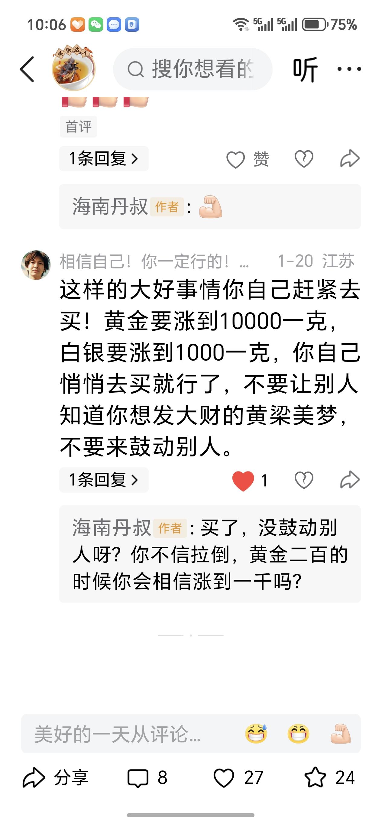 认知差=财富差!金银再创新高,一月白银涨10块,酸我的人脸疼不? 认知决定一切,这话真的一点不假!这段时间黄金白银一路狂飙,接连刷新高点,说句实话咱老百姓一开始也不懂为啥涨,但看着不少专业分析师都一致看涨,索性跟风入手了一点,还把分析师的观点和自己的小感悟写成文章分享出来,本意就是好心提醒身边人,别错过这波理财红利。 可万万没想到,好心好意的分享,反倒招来不少人的酸言酸语。有人说咱瞎跟风,有人觉得是炒作,还有人嘲讽理财都是坑,不如踏踏实实打工,各种阴阳怪气的话听得人心里挺不是滋味。 结果呢?打脸来得又快又狠!这才不到一个月的时间,白银直接一克涨了10块钱,金价也是一路高歌再创新高,当初跟风布局的,轻轻松松就赚了一笔,这份收益可比埋头打工攒下来的血汗钱来得实在多了。 咱就想问问那些当初酸言酸语的人,现在看着这行情,心里啥滋味?不是咱炫耀,而是实实在在的行情摆在这,认知不同,注定了财富轨迹天差地别。 有些人就是天生有发财命吗?未必!不过是人家有投资意识,愿意去了解新机遇,敢于跟着趋势尝试罢了。反观有些人,一辈子死守着死工资,埋头苦干不敢迈出理财的第一步,还见不得别人抓住机会赚钱,动辄就酸两句,这样的心态,这辈子想发财都难。 大家不妨静下心来想想,现在物价天天涨,光靠辛辛苦苦打工挣那点死工资,除去日常开销根本攒不下多少,想要改变命运谈何容易?理财不是投机,也不是富人的专属,而是普通人对抗通胀、实现财富增值的必经之路。黄金白银期货 这次金银大涨就是最好的例子,看懂趋势、敢出手的人已经赚得盆满钵满,而那些质疑观望、还爱酸人的,只能眼睁睁看着机会溜走。认知跟不上时代,财富自然也跟不上,这就是最现实的道理!
