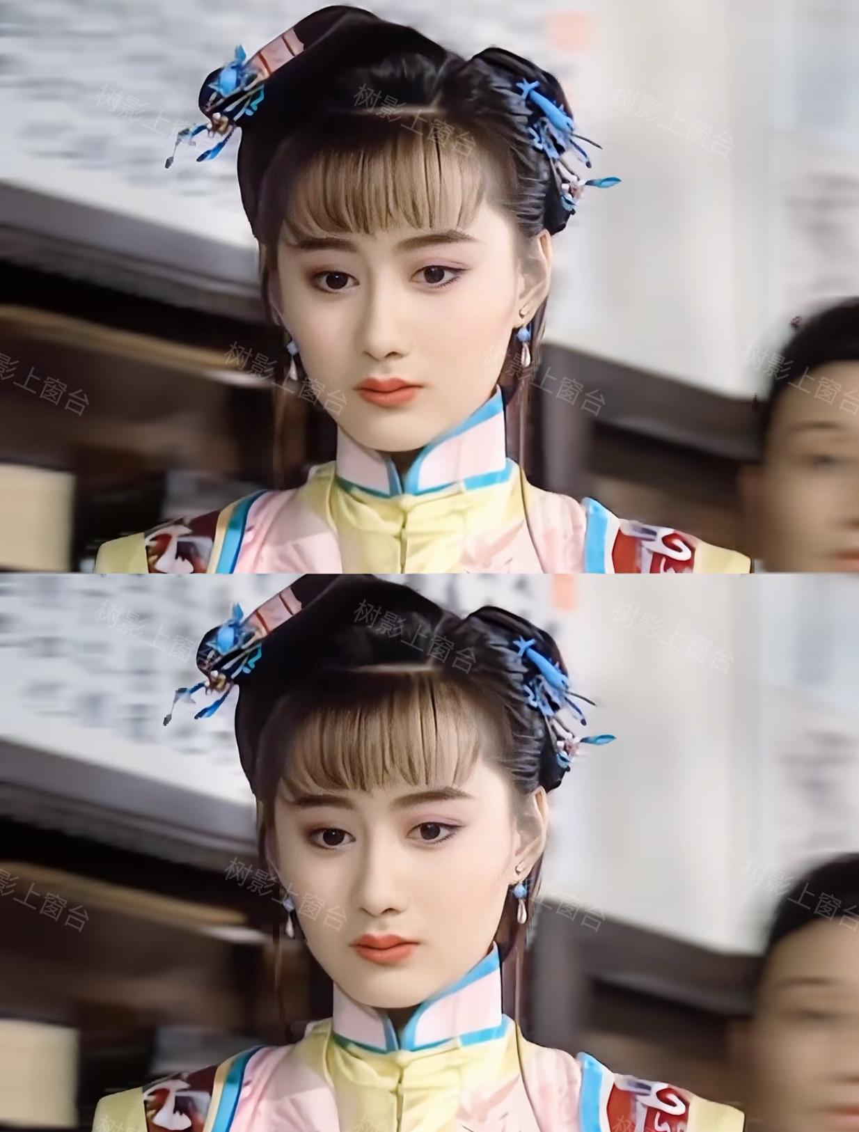 如今再看到这张剧照, 只能感慨这闺女可真俊啊, 值得琼瑶为她保留角色生生等了三年才开拍。 这妆容服饰配色, 无一不恰到好处把她塑造成一朵带着晨露芬芳清新又惹人怜爱的白莲, 当然当年白莲还没有其他意思, 楚楚可怜, 楚楚动人, 觉得特别适合她。