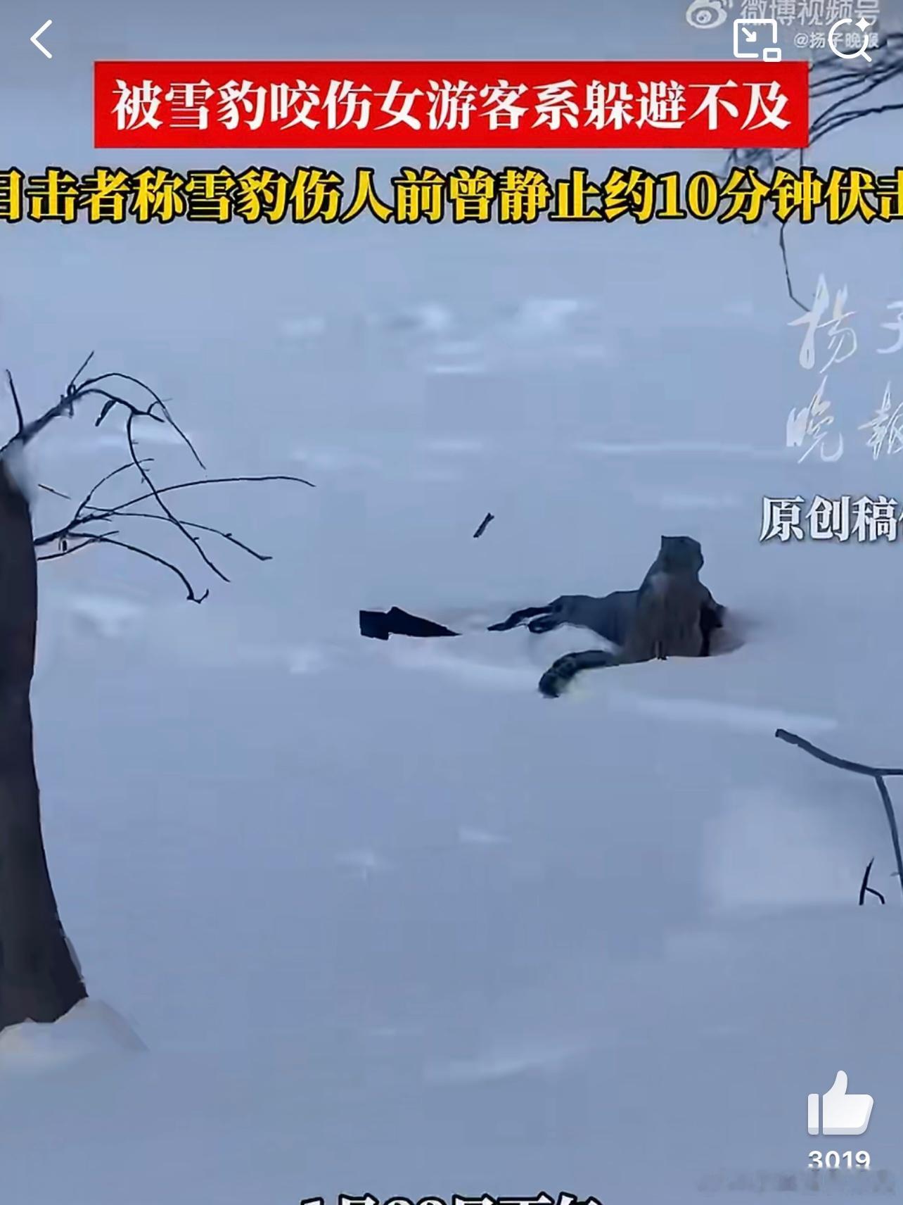 被雪豹咬伤女游客系躲避不及太吓人了 大家以后遇到野生动物还是躲的越远越好