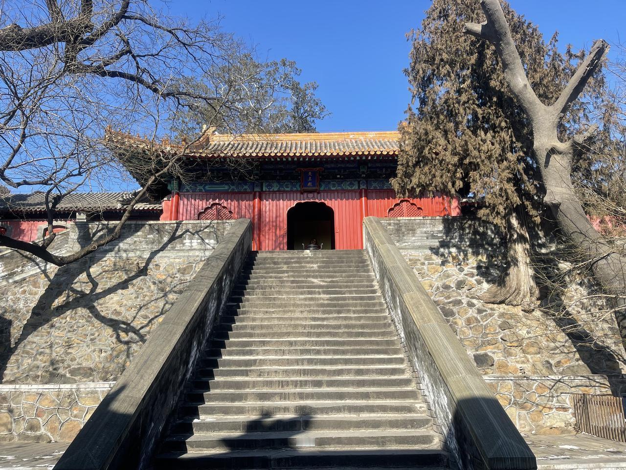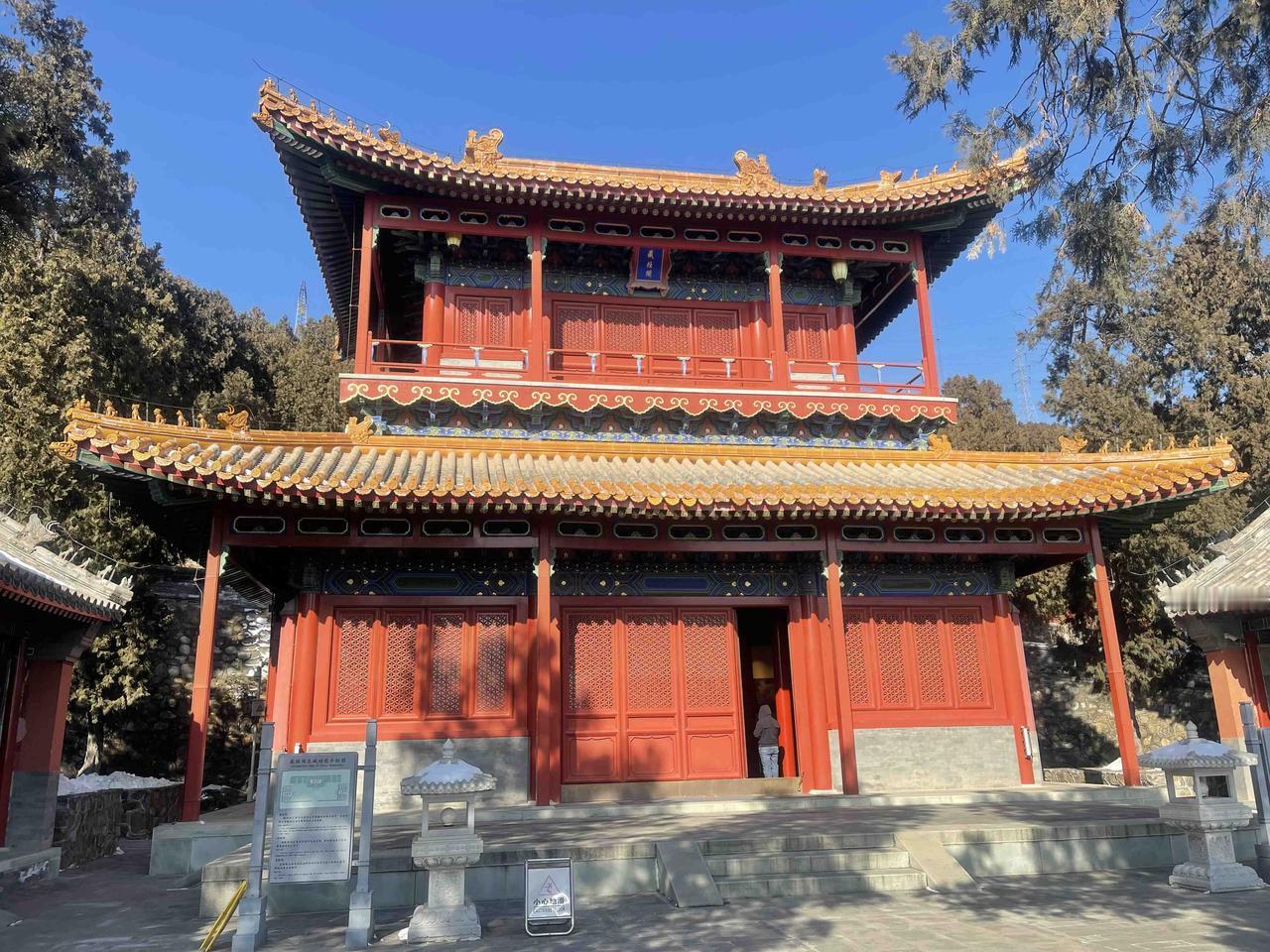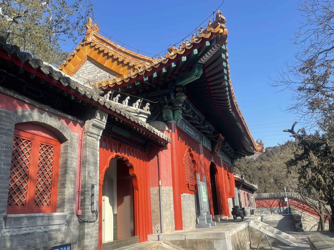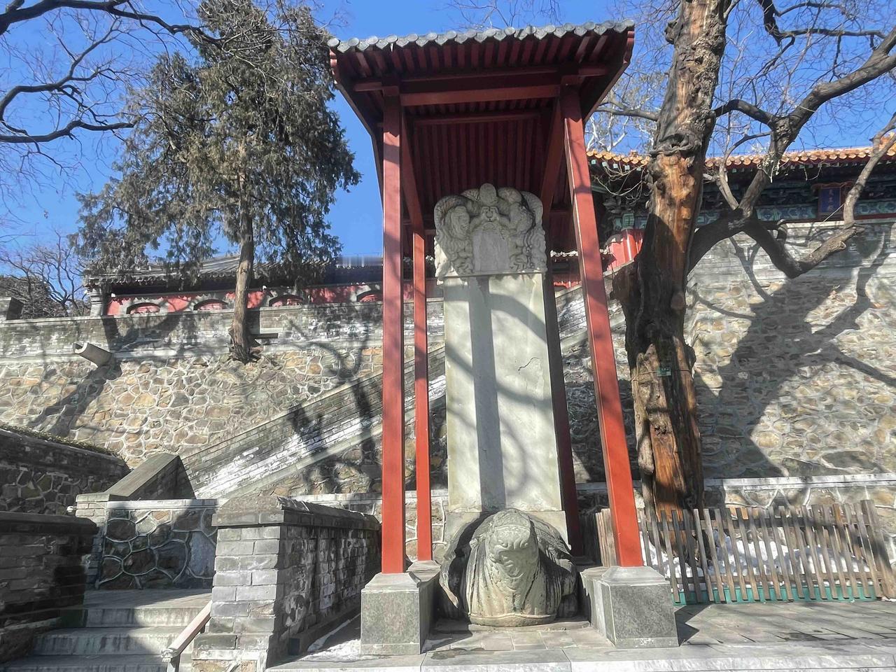 山道上还残留着积雪,没有上到这山顶去,于是乎再次结缘法海寺!!石景山法海寺由明英宗时御用监太监李童“为报圣恩而建”,始建于明英宗正统四年(1439年),正统八年(1443年)落成,英宗赐额曰“敕赐法海禅寺”!! 修建法海寺的李童(1389-1453),字彦真,号朴庵,江西庐陵人,是明代成祖、仁宗、宣宗、英宗、代宗时五朝太监,为报自己累蒙列圣宠幸之恩特建此寺,逝后安眠于法海寺西南坡下的吉壤!! 法海寺依山势层叠而上,四进院落,沿轴线有山门殿、天王殿、大雄宝殿、药师殿、藏经阁。其大雄宝殿是整座寺庙的核心与灵魂所在,法海寺“五绝”中的明代壁画、曼陀罗藻井,皆在殿内! 大雄宝殿内完整地保存着10铺明代壁画,堪称艺术精品,多年前曾有缘一见,现真迹需预约参观,门票100元!不过药师殿、方丈殿、选佛场等,皆有壁画展!!