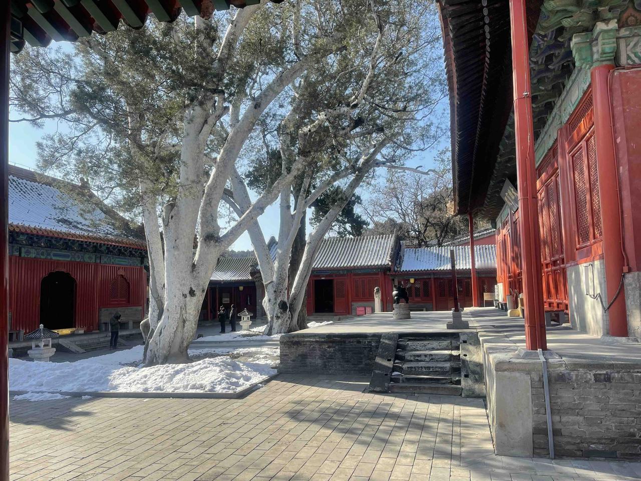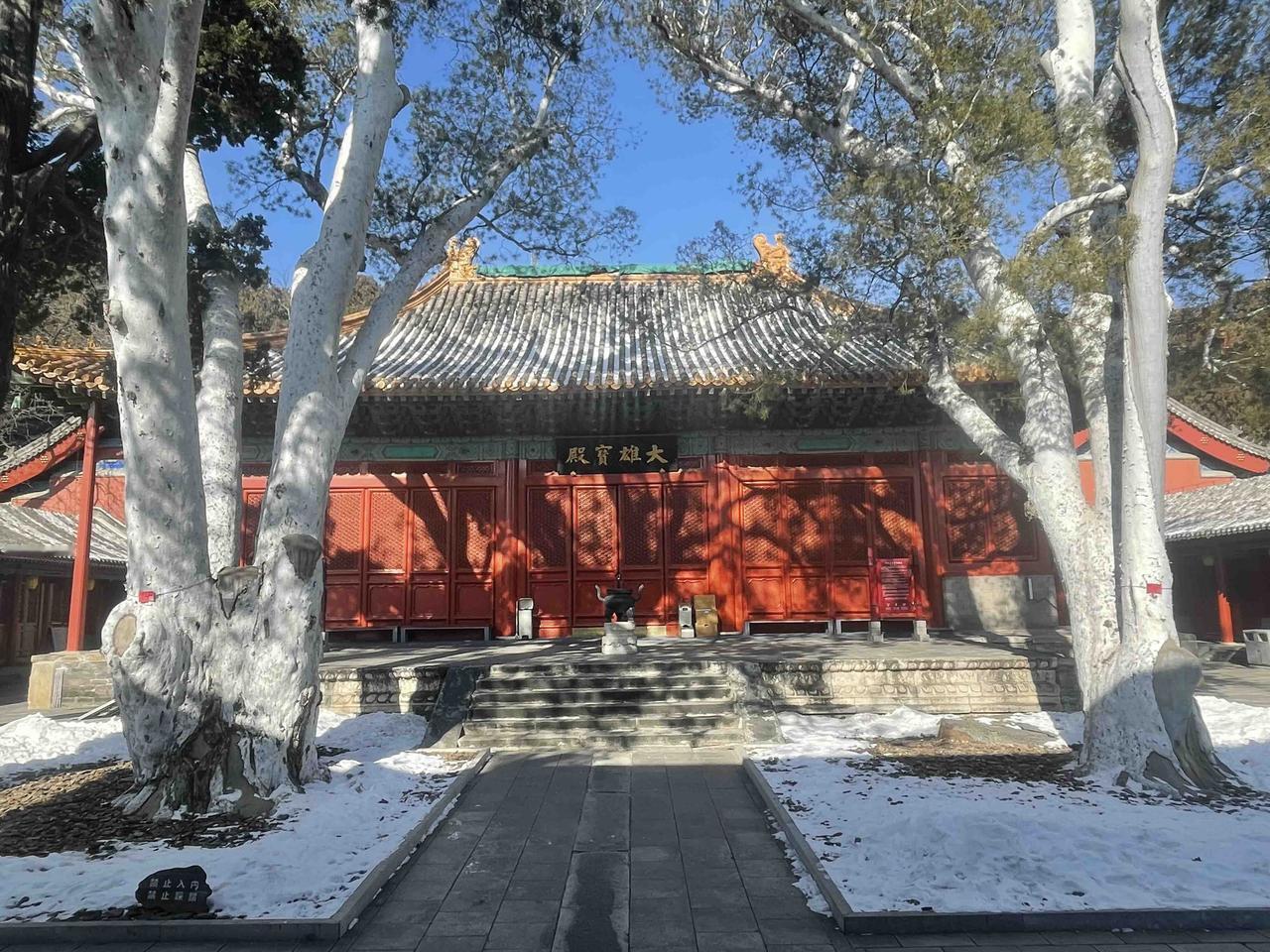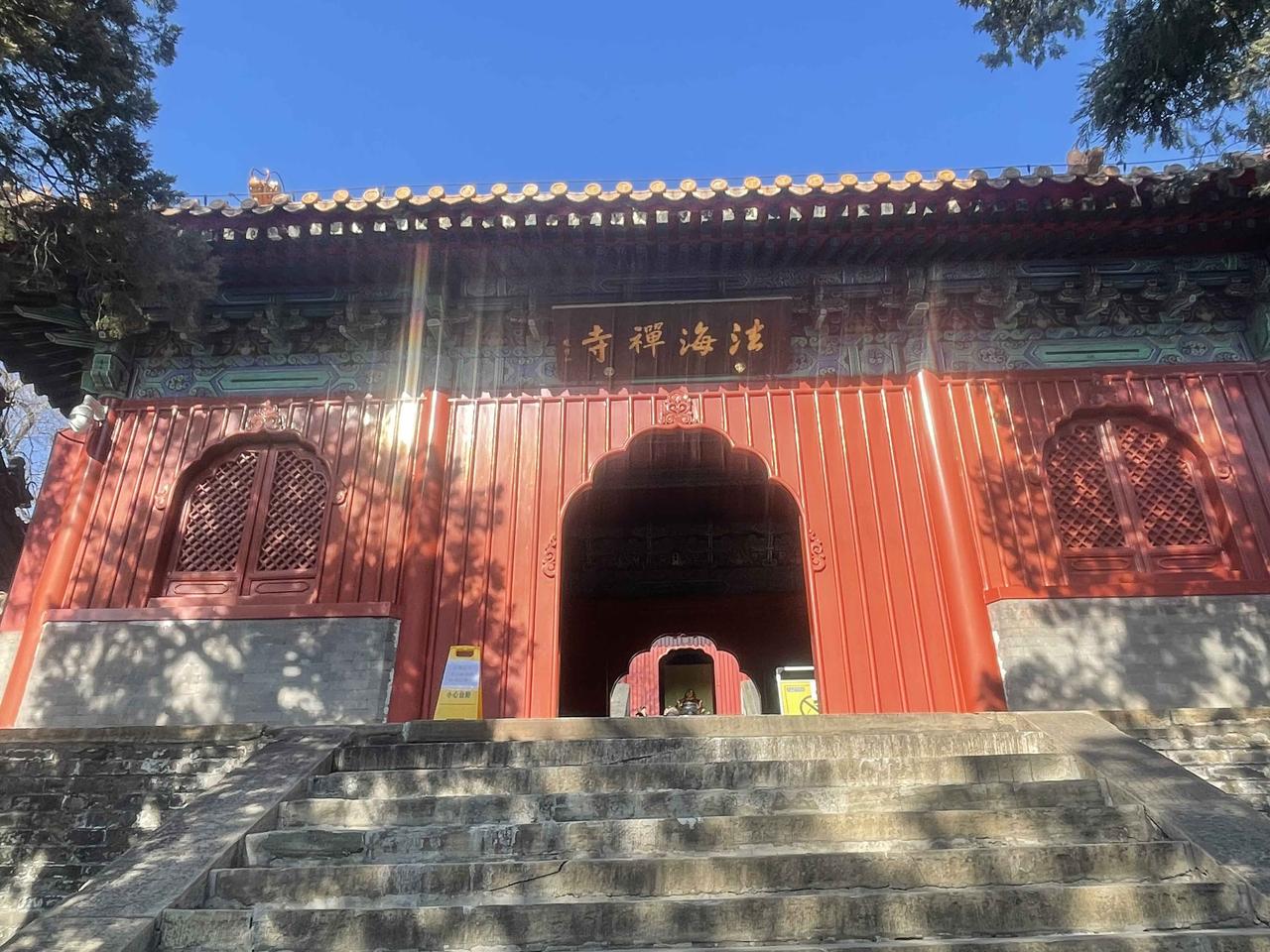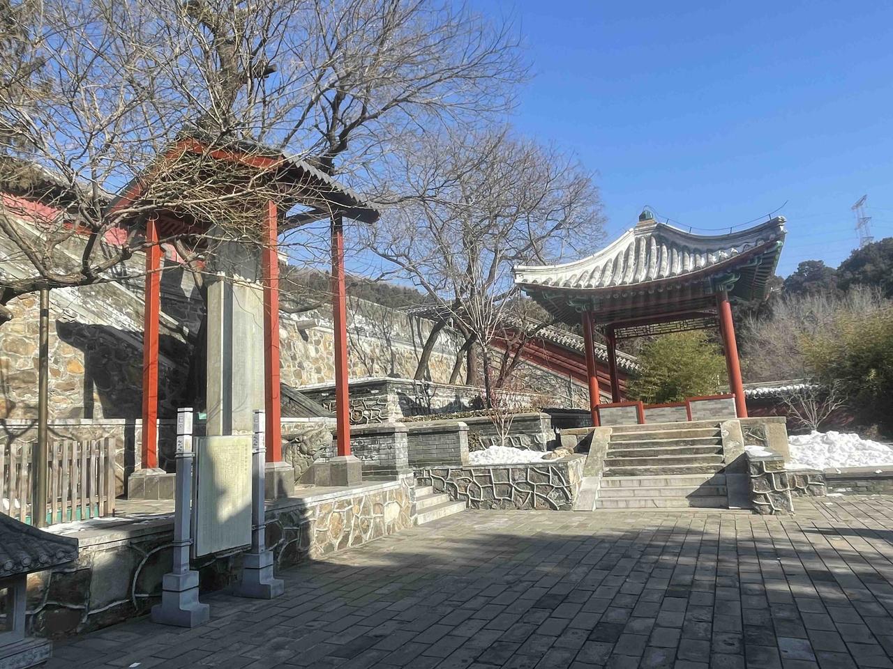 山道上还残留着积雪,没有上到这山顶去,于是乎再次结缘法海寺!!石景山法海寺由明英宗时御用监太监李童“为报圣恩而建”,始建于明英宗正统四年(1439年),正统八年(1443年)落成,英宗赐额曰“敕赐法海禅寺”!! 修建法海寺的李童(1389-1453),字彦真,号朴庵,江西庐陵人,是明代成祖、仁宗、宣宗、英宗、代宗时五朝太监,为报自己累蒙列圣宠幸之恩特建此寺,逝后安眠于法海寺西南坡下的吉壤!! 法海寺依山势层叠而上,四进院落,沿轴线有山门殿、天王殿、大雄宝殿、药师殿、藏经阁。其大雄宝殿是整座寺庙的核心与灵魂所在,法海寺“五绝”中的明代壁画、曼陀罗藻井,皆在殿内! 大雄宝殿内完整地保存着10铺明代壁画,堪称艺术精品,多年前曾有缘一见,现真迹需预约参观,门票100元!不过药师殿、方丈殿、选佛场等,皆有壁画展!!