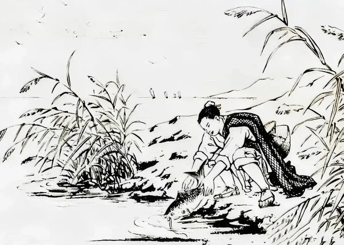 古时,一男子从河里钓上一条鲤鱼,刨开鱼肚一看,里面竟然满是鱼籽。男子心软,又将鱼肚缝好,将鲤鱼放生。一年后,一个美貌女子找上门来,说要嫁男子为妻。新婚当晚,男子发现,妻子肚皮之上,竟有一个刀疤。 章华是明万历年间桃花村的庄户子弟,幼时父母早亡,由祖父抚养成人。家境贫寒,村中人虽不欺他,却也多有轻视。 章华脾气耿直,不拘小节,平日靠种田、打柴度日,村口那条桃花溪便是他最常走动的地方。他常说:“人活一世,不欠天,不欠地,心中坦然即可。” 那年春末,桃花溪涨水,章华独自一人去钓鱼。正值麦收前夕,村中农人多忙于田间,溪边格外清静。他按祖父传授的方法,用蚯蚓挂钩,不一会儿便钓上一条肥鲤。 时隔一年,村中秋收在即。章华独自在家收拾门前台阶。黄昏时分,陌生女子出现在他门前。女子穿一身湖绿衣裙,面容清秀,语气诚恳,自称为报一年前恩情而来。 章华起初疑惑,后又见其执意,虽感意外却未多追问,只让女子进门休息。几日后,两人拜堂成婚。 成婚当夜,章华偶然发现妻子腹部有一条横向刀疤,形状与当初自己缝鱼肚时一般无二。章华思前想后,压不住心中疑惑,便问及此事。 妻子沉默片刻,终开口言道,自己本是那条被救鲤鱼。因感章华不图回报之义,甘愿舍修行之果报转世为人,只愿与恩人共度余生。 章华听罢,不知真假,但心中忽起涟漪,忆起溪边放生一幕,语顿许久,才道:“此事若真,命有安排,我绝不负你。” 此后夫妻和美,相敬如宾。 清代蒲松龄在《聊斋志异》中记有《锦瑟》《莲香》等篇,讲书生救蛇或鱼,得其报恩为妻。虽为小说,但皆源于民间旧说,背后逻辑正是“因果报应”、“积善得福”。 尤其在明代中后期,道教和佛教在民间传播广泛,各地设有放生池,《放生功德记》中就记载过因放生鲤鱼而得子、避疫等实例。 朝廷虽未直接干预民俗,但地方士绅、庙宇多以此劝善,起到稳定民心作用。 章华的村落“桃花村”地处徽州府西南,地理封闭,百姓信神敬天,对放生、感应等传说深信不疑。《大明律》中虽未明文规定放生制度,但部分地方法帖却提倡保护水产,尤其对鲤鱼、龟等视为祥兽,不可随意宰杀。 这种文化氛围之下,章华的行为并不突兀。 正如《桃花源记》所描述的理想生活,“黄发垂髫,并怡然自乐”,章华与鲤鱼女子的生活便是对这种理想的具象呈现。 他们没有权势,没有金银,但在清贫中得以安稳持家,于动乱人世中自成一隅。