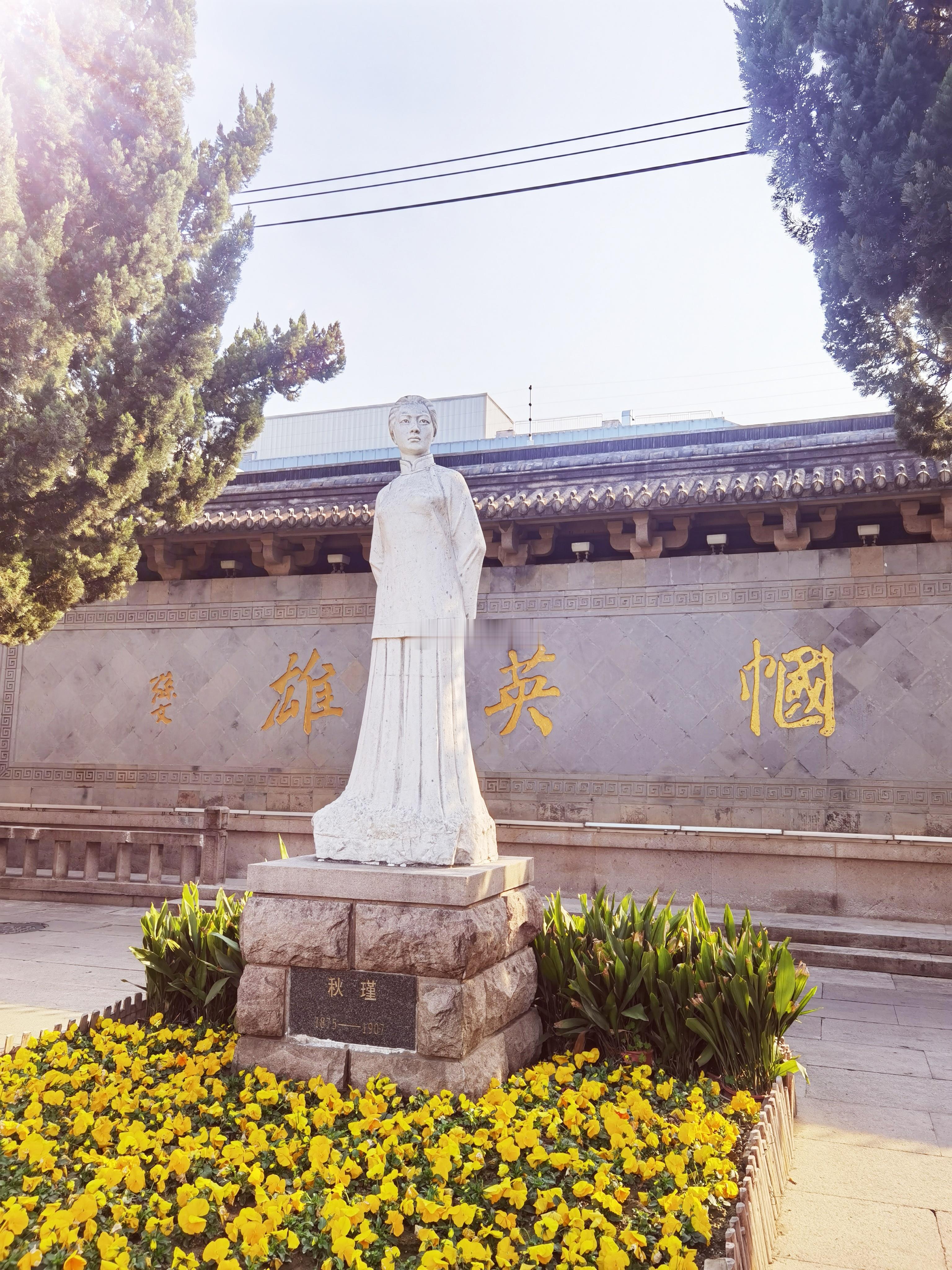 左边是被丑化的“秋瑾”;右边是在绍兴街头,一身正气的“辛亥英雄”秋瑾像!革命先烈,不容玷污! 绍兴·古轩亭口