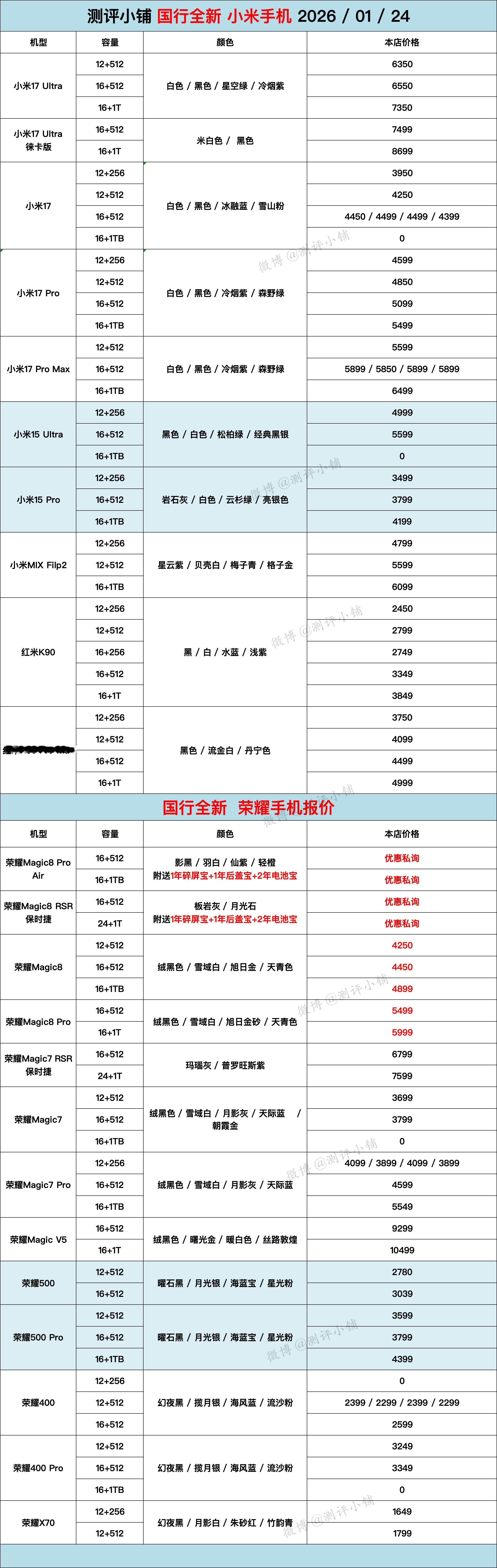 国行全新机,华为Mate80 Pro/Max/RS非凡大师,小米17 Ultra,三星W26等更新