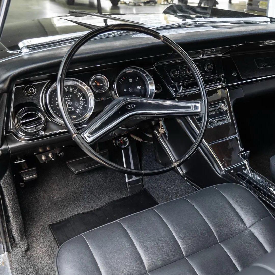 1965年Buick Riviera是首代Riviera(1963–1965年)的小型豪华跑车收官之作。1965款以更干练的“隐藏式大灯”与更宽阔的格栅完成了对外观的最后润色,因而成为首代中最受追捧的一年款。 它主要搭载Buick传统的“Nailhead”大排量V8:常见为401立方英寸(约325hp)版本,顶配可选425立方英寸的Super Wildcat双四喉高功率机型(约360hp,扭矩可观)。 车身尺码偏大、姿态沉稳——轴距约117英寸、车长约208–209英寸,整备质量约4166磅;Car and Driver当年实测0–60mph约7.2秒、四分之一英里成绩也有说服力,表现出豪华巡航与充沛动力并存的性格。 在动感数据之外,1965年Riviera更代表一种60年代的审美与生活方式:它既不是纯粹的肌肉车,也非低调豪华轿车,而是一款讲设计、讲品味、又能在长途高速上从容表现的“个人豪华跑旅”。 别克