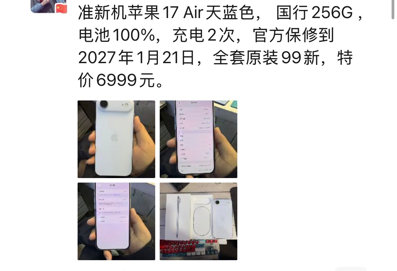 iPhoneAir直降2500块朋友圈的手机贩子也着急了,不过我怀疑他是搞笑的,这个价格能卖出去吗?虽然这次是限量的,但是谁知道苹果是不是试水一下,万一要是效果好,后面直接跟上,不限量。
