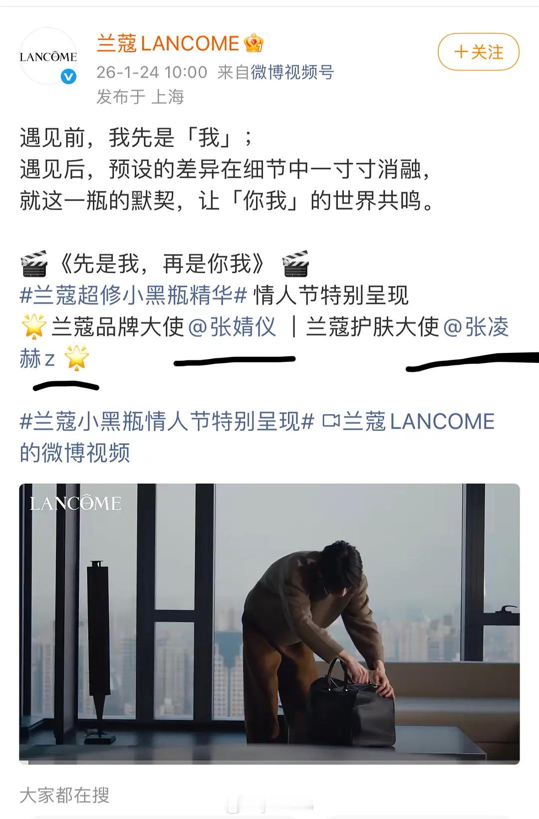 张凌赫粉丝因为兰蔻被张婧仪压了现在在冲品牌