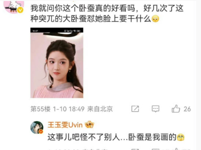 王玉雯好诚实和粉丝解释说卧蚕是自己画的,不要怪化妆师