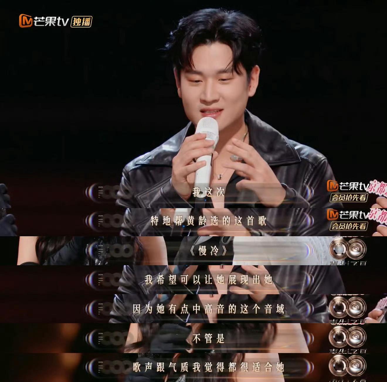 何炅说低估了黄龄唱情歌的杀伤力 听多了黄龄妩媚婉转缱绻的曲风,快忘了她唱情歌也很有杀伤力,和周兴哲的《慢冷》舞台好好听,以后多唱好吗!声生不息
