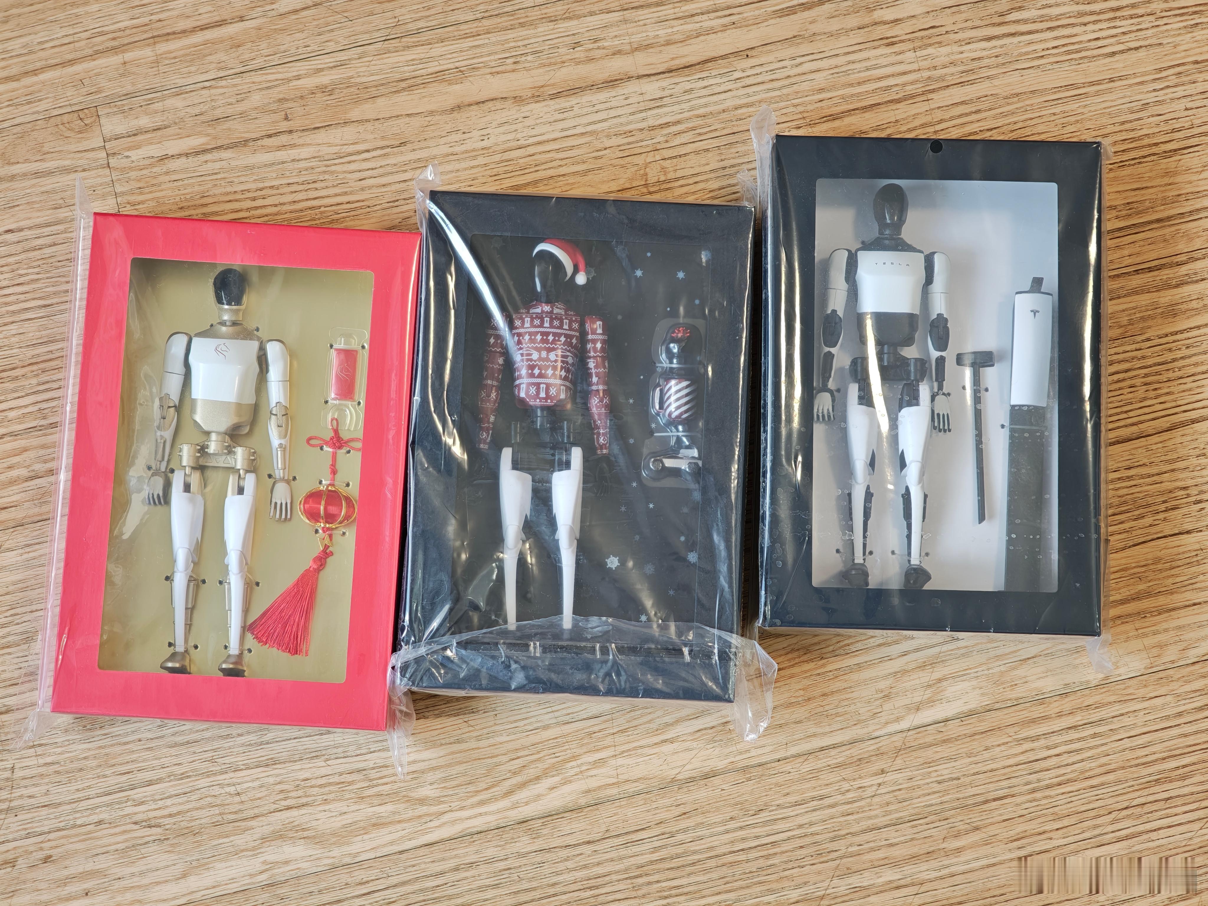 Tesla Bot马年特别款收到啦!集齐了3款特斯拉机器人,但是没抽到黑色的隐藏款。特斯拉挺会玩的,这机器人不断换皮肤,还开始搞盲盒了