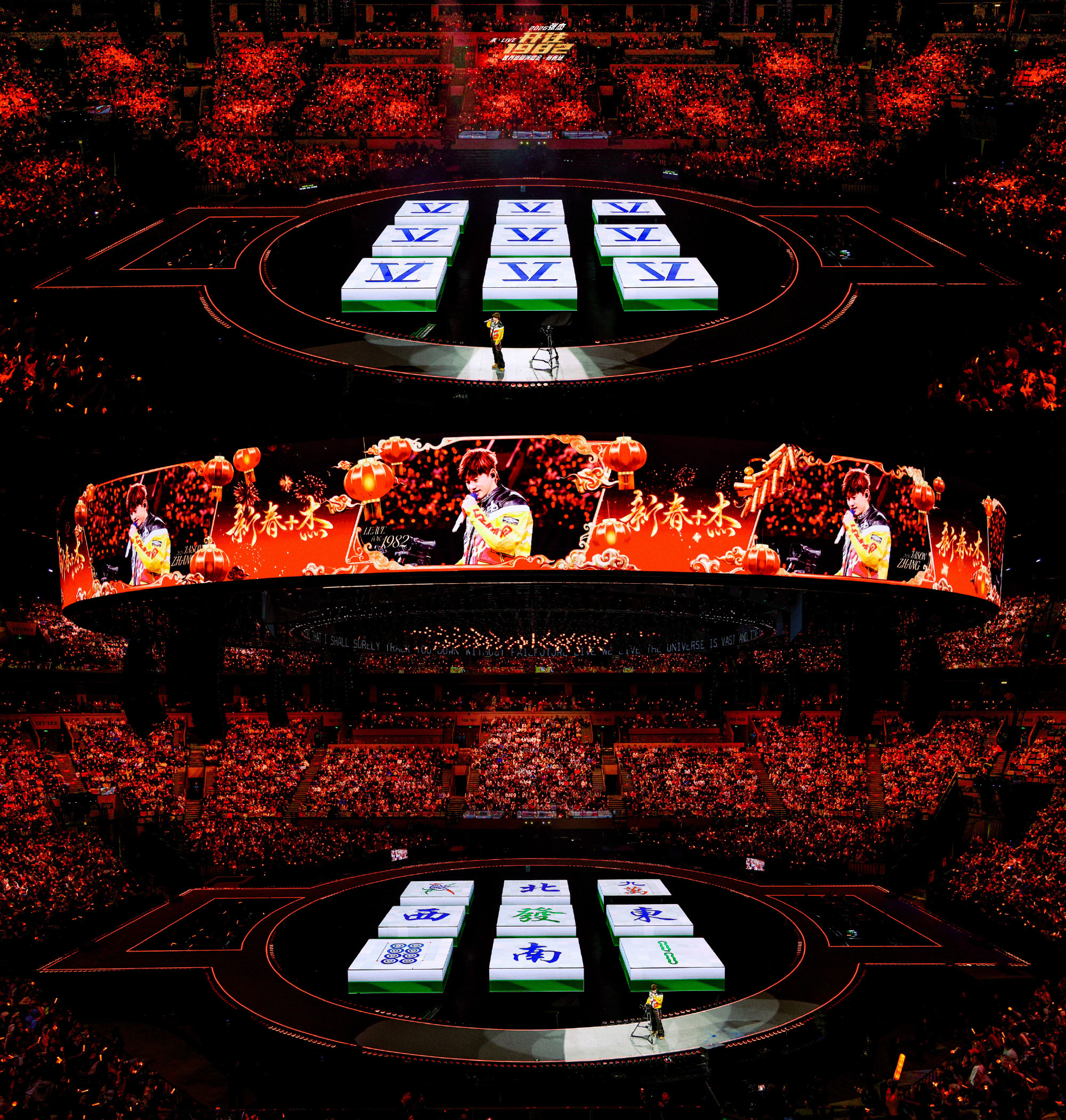 张杰成都演唱会新春场的龙门阵洛希极限2.0四面台有会移动的移动台里面的龙门阵九宫