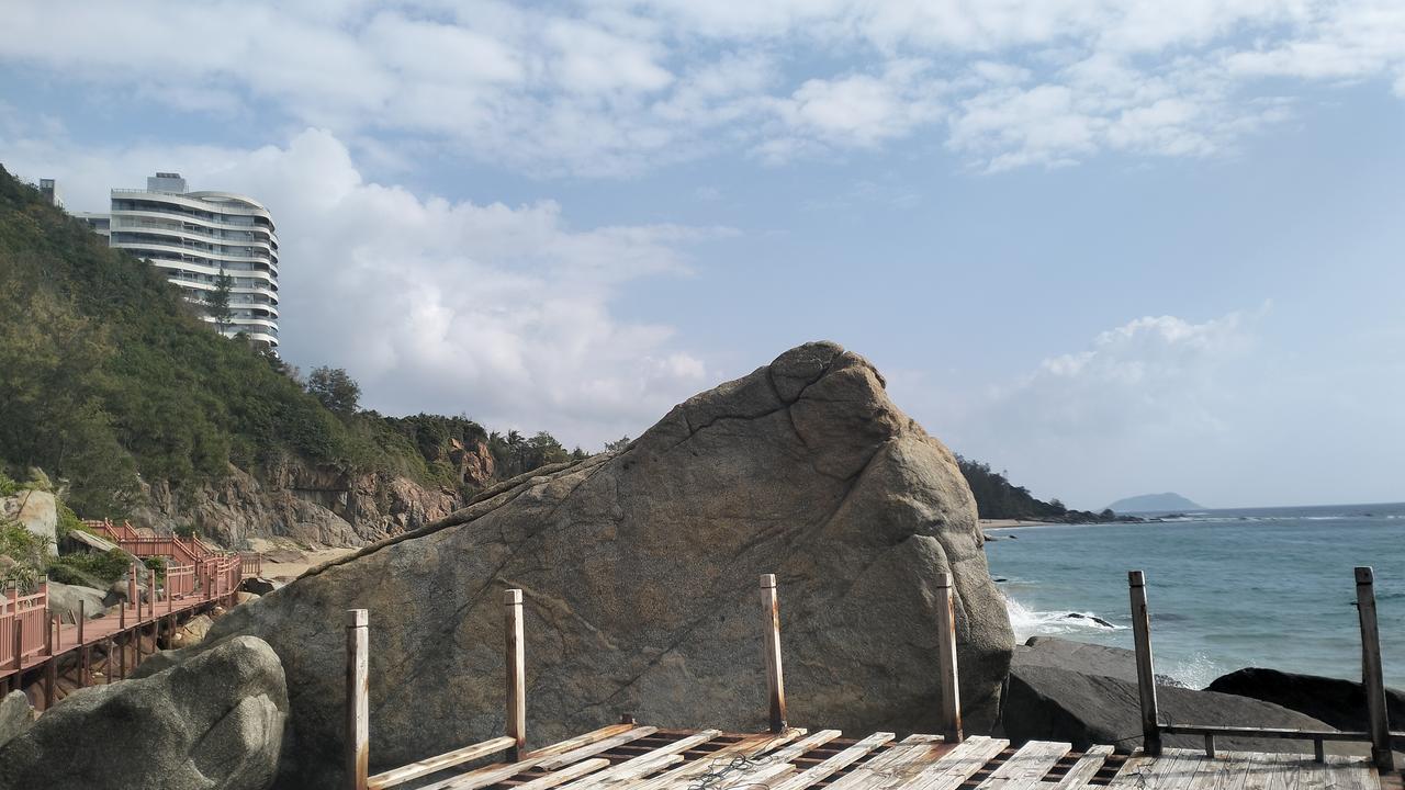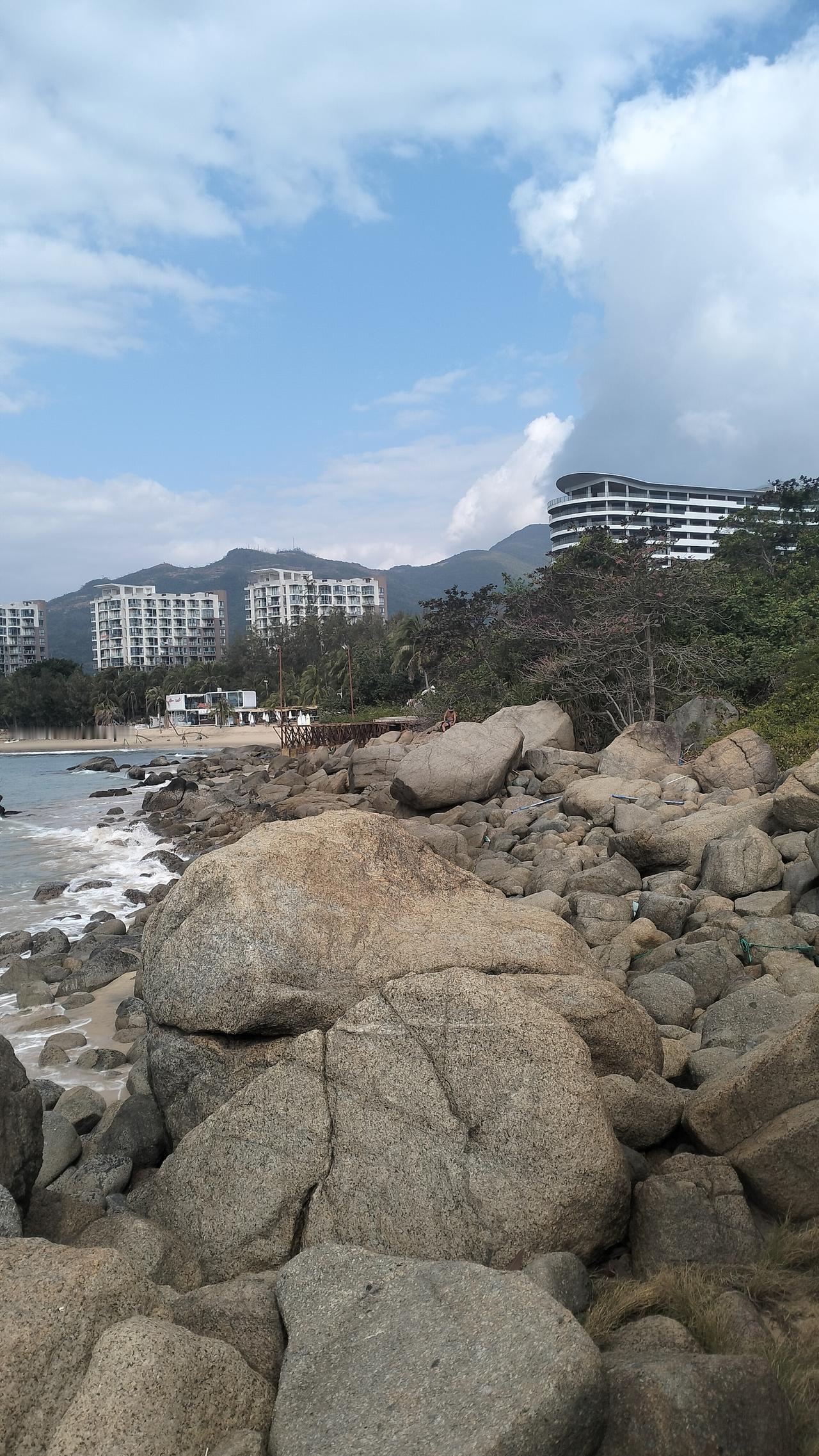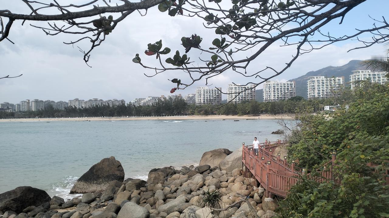 自驾海南之旅55——环岛第17站 三到香水湾 2015年同学海南聚会落脚香水湾,2025年底看望老同学二抵香水湾,时隔不到一月,再次来到香水湾。三次来香水湾到了三个不同的小区,由北及南分别是君澜香水湾、嶺海香水湾和中信香水湾。君澜香水湾多为别墅式两层建筑,配有泳池,造价500万至1000万一套。嶺海香水湾以高层建筑为主,为香水湾最新建设小区,有公共泳池。中信香水湾原为中信集团所规划建造,高层建筑与别墅建筑群并举,临海依山,地理位置独特。 这次到了中信香水湾,在这里旅居五个冬季的老家杨凌同院居住陈主席陪同,站在8号楼17楼顶观景台,香水湾尽收眼底,分界洲岛清晰可见,向海早观日出,向山晚看日落。五指山牛岭巍然屹立,云雾缭绕,南面富力湾沙滩弯月长长,椰林密密。下楼沿着海岸步道,或漫步沙滩,或登梯往前,绕行一周,水与山交融,海景与雨林兼并,别具一格。察看后大有旅居此地的急切向往。