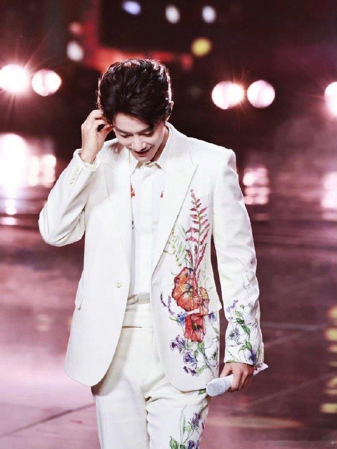 丁程鑫好六街提前过年你好星期六小丁穿黑色西装的舞台造型帅炸了,利落的动作搭配灯光