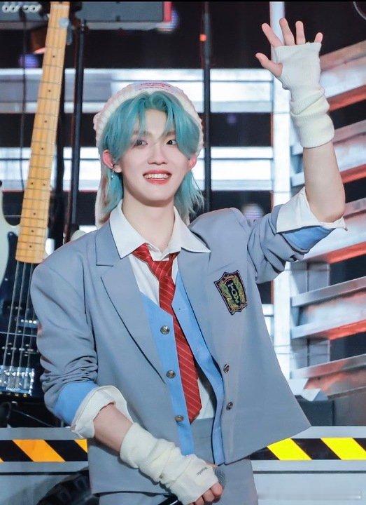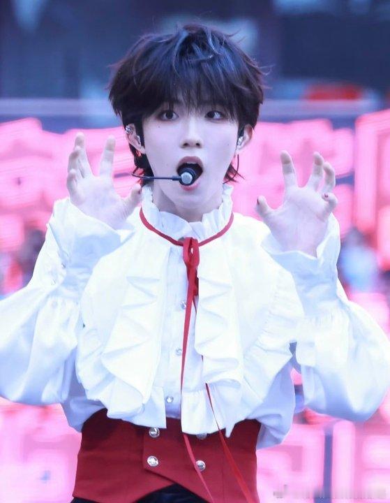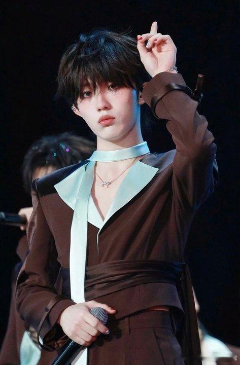 丁程鑫好六街提前过年你好星期六小丁穿黑色西装的舞台造型帅炸了,利落的动作搭配灯光