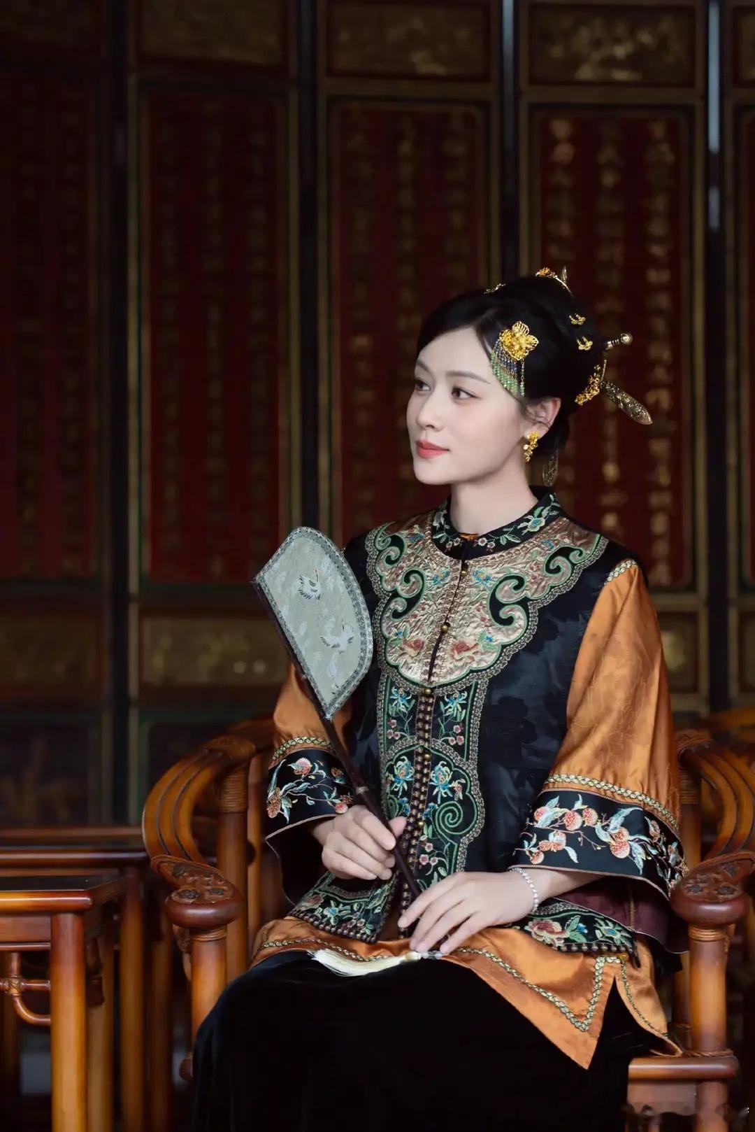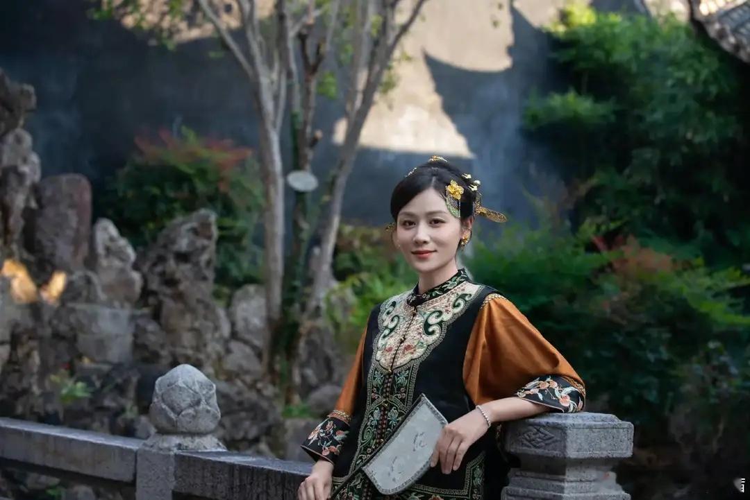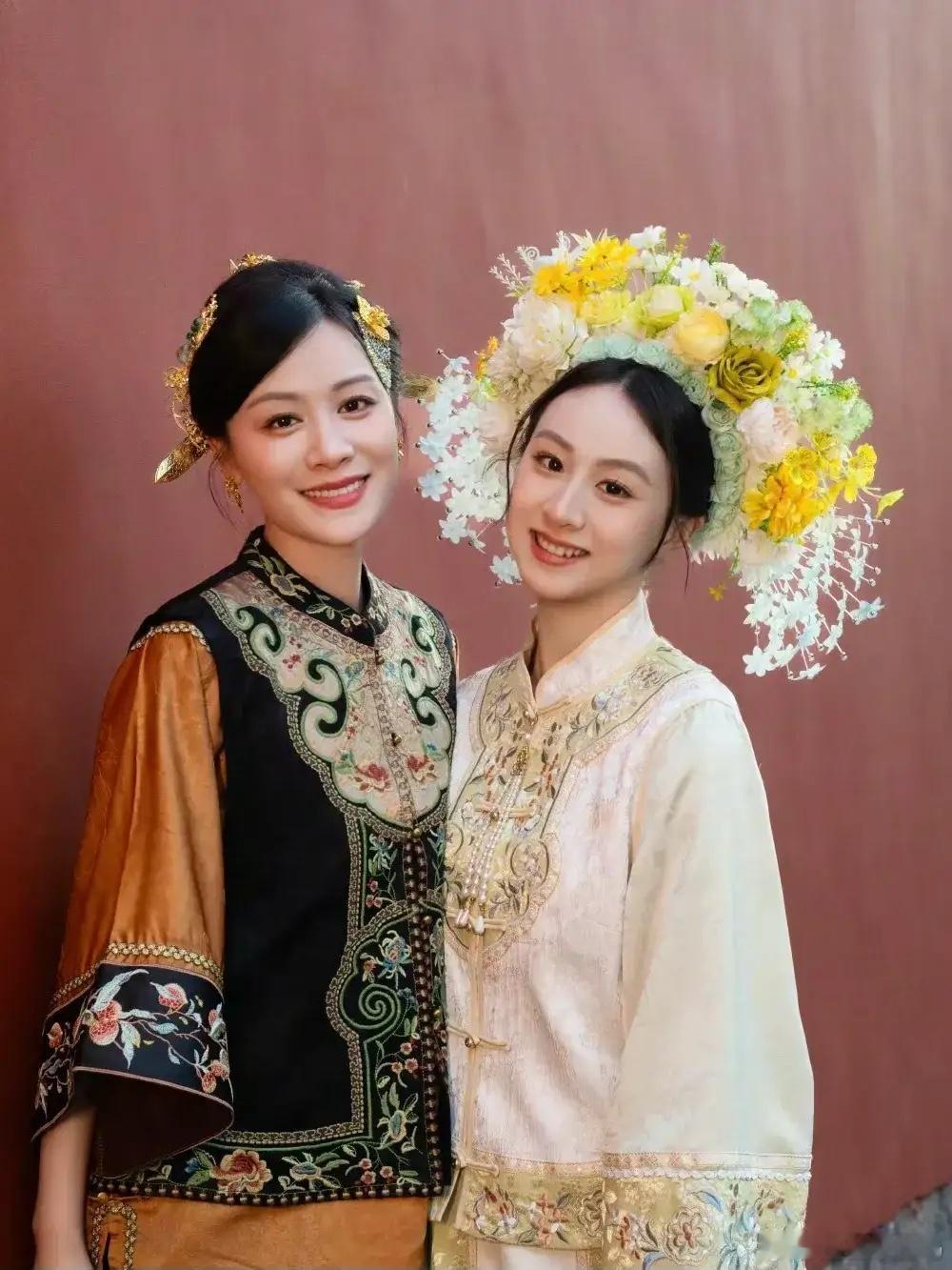 叶一茜森碟簪花照这母女俩,头上的簪花比不过两人的美丽,好像姐妹俩一样