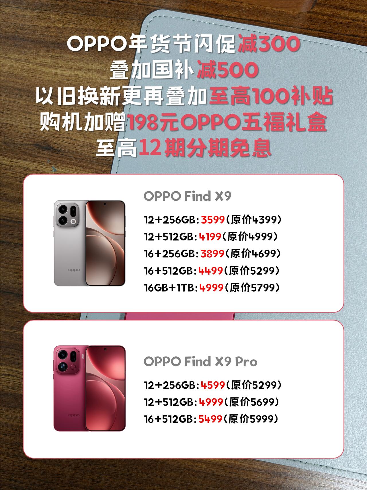 减800,Find X9是我能拥有的吗?😍 z 年前打算换手机的有福了啊,赶上各手机厂商搞活动! 像OPPO就就给足诚意了,年货节力度拉满,打算换Find X9系列的可算等到了👀 标准款Find X9闪促直接-300,再叠加国补-500,一共-800,3599起就能拿下 Pro款也很给力,闪促叠加国补-500,4599就能拿下相当划算 而且全系都至多支持12期,还有价值198的五福开运礼盒送,这不美滋滋了? Find X9系列从发布到现在一直很火啊,两款人气都很高! 全系有大电池、ColorOS16,影像有丹霞色彩还原镜头和支持4K live✅ 标准版中杯旗舰标杆,手感、续航、拍照都很强,性价比很不错 Pro款影像实力拉满,哈苏真2亿像素随手就能出大片,都能对标超大杯的 再加上还有ColorOS 16这一超级加分项,两款体验都很不错的~ 春节打算换手机过好年的,冲OPPO Find X9系列完全没问题的 最近OPPO还出了马年配件鸿运版(P3-4),换新手机搭上新配件,年味先拉满,好意头嘞~