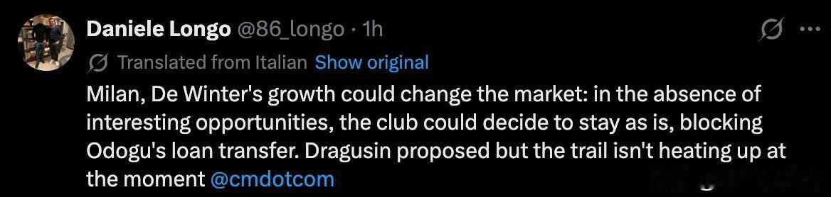 德温特的出色表现让米兰放弃了购买新后卫的决定,米兰有可能选择留下奥多古,而不是之前考虑的外租,原因是德温特最近的表现足够出色,球队不需要通过新的球员加入来改善替补席,所以奥多古很可能不会被出租,而是留在球队安心末位替补。 隆戈消息称米兰改变了原有的转会计划,之前一直说的转会策略是出租奥多古,引进一位有经验的替补球员,来改善后防线替补质量问题,但最近德温特表现十分出色,阿莱格里对于后防线非常满意,所以俱乐部很可能会重新调整转会策略,冬季窗口不会对后防线有任何改造。 冬天哥最近几场比赛表现十分出色,个人觉得是相对于之前,他自身短板还是比较明显的,不够硬,他的对抗能力不能说一般,要说差,基本对方一上身体他就吃亏,而是脚下小失误有点多,只是没有造成严重的后果而已,个人觉得冬天哥就是一个轮换替补,我们冬季窗口不补强,其实有风险,奥多古一直不给机会,三个后卫就德温特一个替补?只能说冬季窗口暂时凑合,夏季窗口还是要买球员才行。