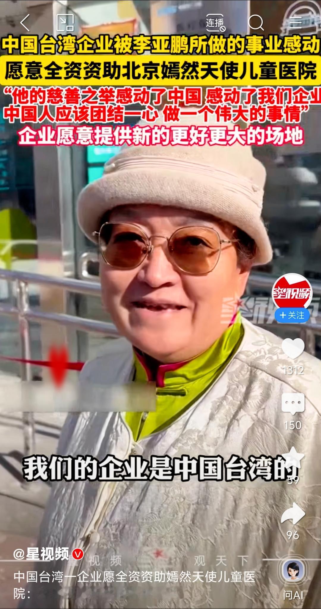 破防!台湾企业全资救嫣然医院,一句“我是中国人”看哭全网 绝境逢生!深陷运营危机的嫣然天使儿童医院,被台湾裕隆集团董事长严陈莉莲一句承诺拉回希望:无条件全资资助,房租+所有运营资金全包! 这份跨越海峡的大爱,只因被李亚鹏的坚守打动。16年,11000多台免费唇腭裂手术,哪怕租金翻倍、欠租被诉、资金链断裂,他贴钱硬撑,从未停过救助。 而严陈莉莲受访时那句“企业是台湾的,我是中国人”,质朴却千钧力,道尽两岸同胞血浓于水的深情。非典时她曾捐救护车驰援北京,如今再伸援手,让公益接力,让大爱无界。 寒冬里的这场双向奔赴,不仅守住了孩子们的笑容,更暖了两岸人的心!这才是同胞该有的模样❤️嫣然天使公益 嫣然儿童医院 公益嫣然基金 嫣然天使儿童院