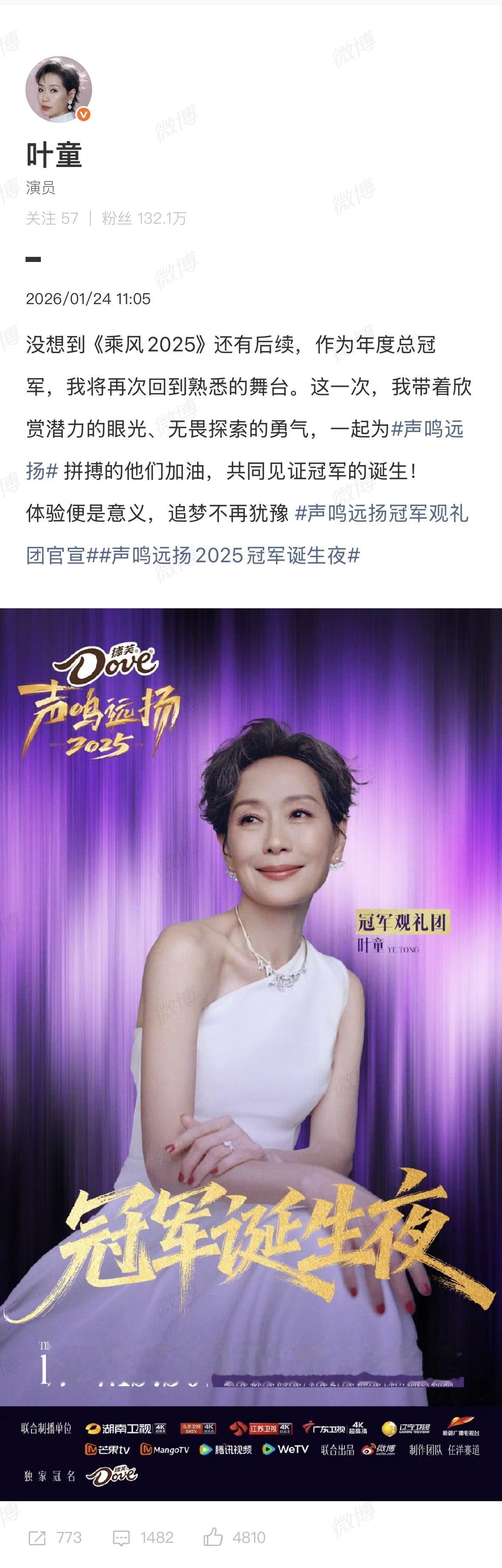叶童加盟声鸣远扬冠军诞生夜 《乘风2025》冠军助阵《声鸣远扬》冠军诞生夜,叶童加盟太惊喜了,期待节目~声鸣远扬