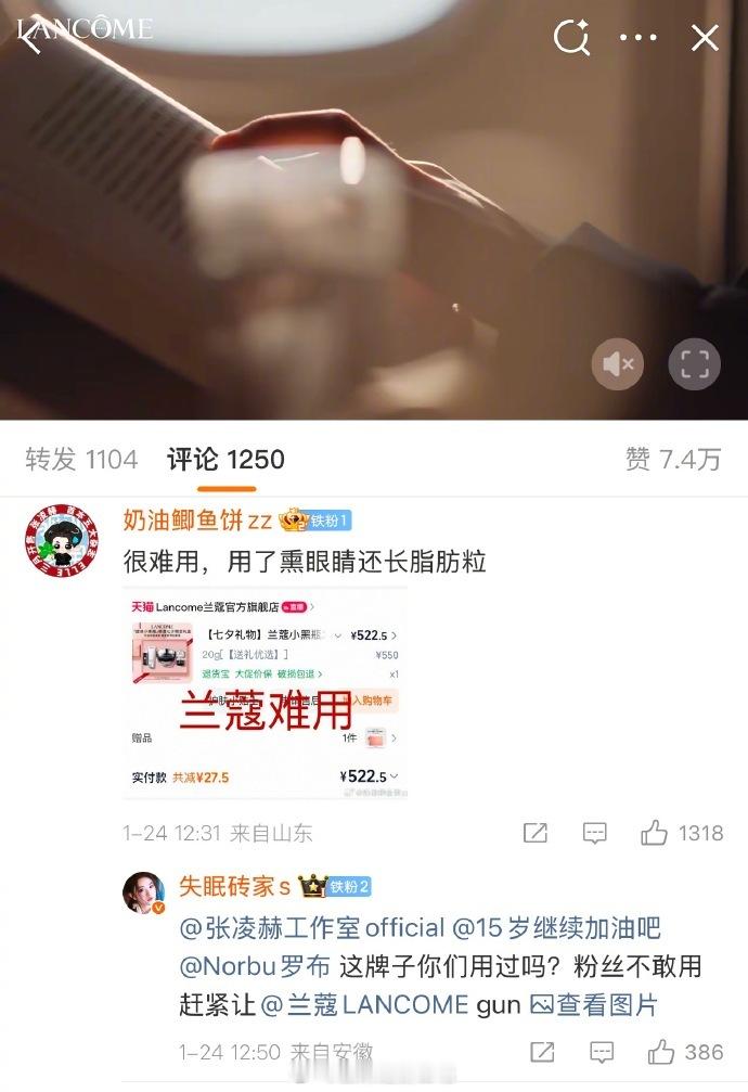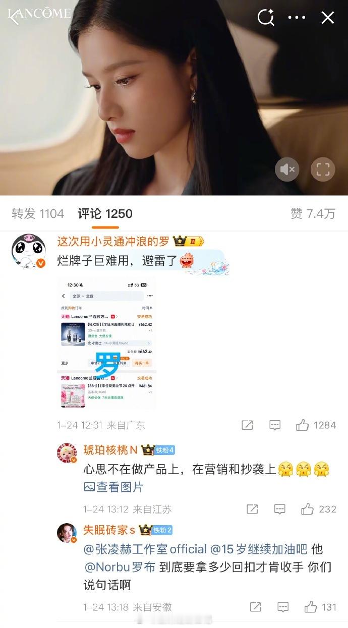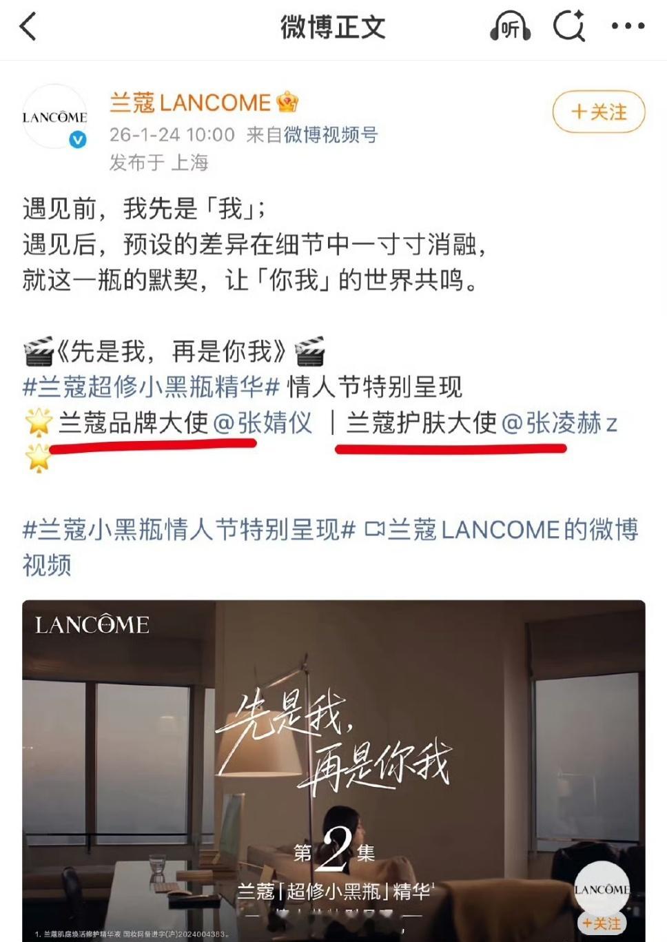 张凌赫粉丝在兰蔻发的张凌赫、张婧仪广告下维权 🐮🐮粉这么无故冲商务博不好吧?兰蔻评论区被贴脸开大了,还是冲自己家的 不过,给张凌赫的title和待遇确实低了